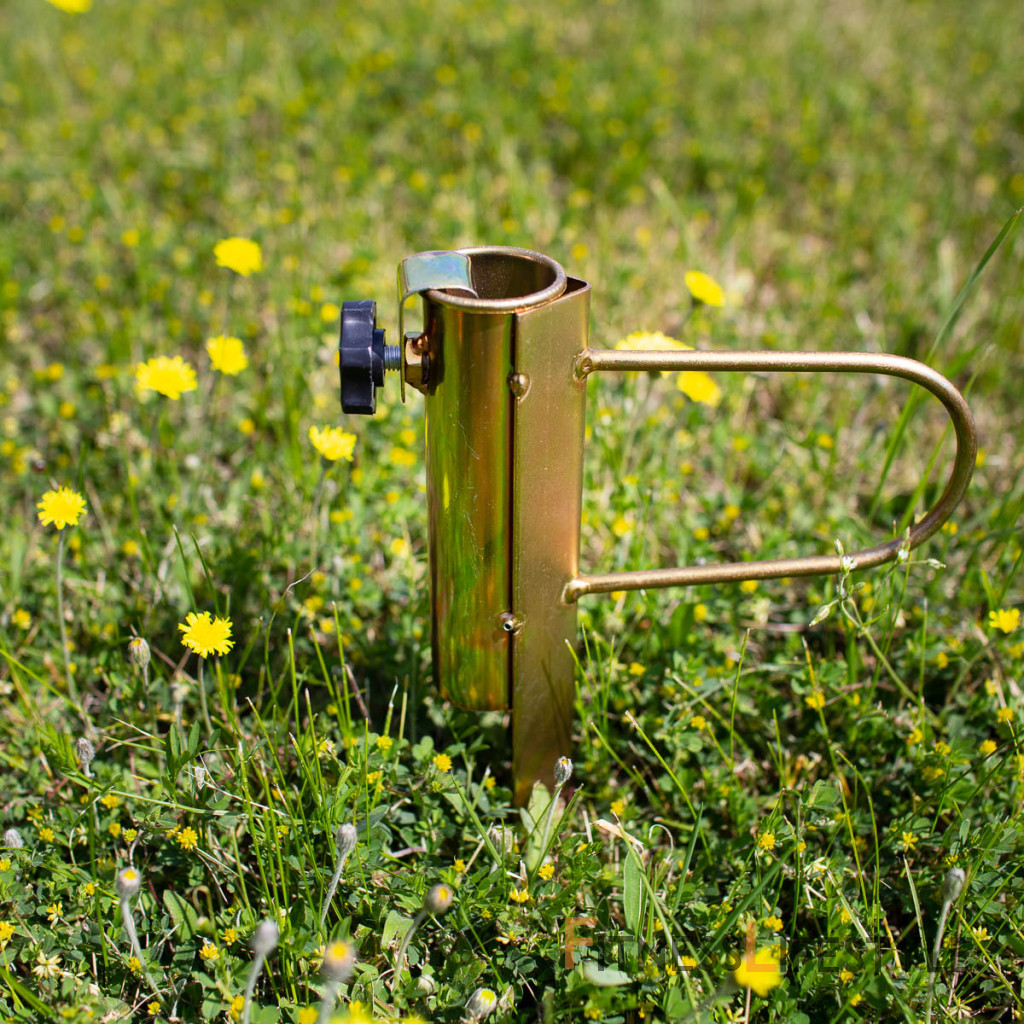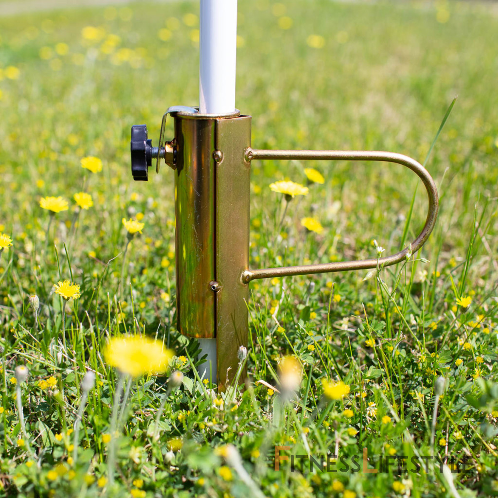 NILS Camp NC7817 je zapichovací držiak - kotva záhradného alebo plážového slnečníka. Oceľový držiak NC7817 je ideálnym doplnkom pre stabilné upevnenie slnečníka na záhrade, alebo na trávnatej ploche pri jazere alebo rybníku. Tŕň sa zapichne do hĺbky 25 centimetrov, do objímky v hornej časti držiaka sa zasunie tyč slnečníka tak, aby bola zapretá o podložie apomocou skrutky s ergonomickou hlavou sa zaistí proti pohybu. Takto uchytený slnečník je stabilný, neotáča sa a odolá aj vetru. Parametre: Upozornenie: