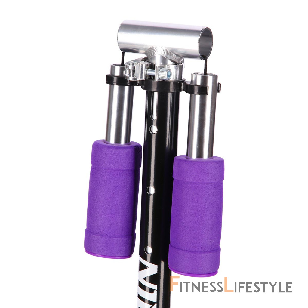 Teleskopické riadidlá sú výškovo nastaviteľné do 4 polôh (60 - 68 - 73 - 78 cm od zeme). Zmena nastavenia výšky sa vykonáva uvoľnením páčky rýchloupináku, stlačením poistného čapu a vysunutím, alebo zasunutím vnútornej tyče riadidiel. Pre úsporu miesta je možné riadidlá zložiť - k tomu je potrebné uvoľniť páčku spodného rýchloupináku a potiahnuť tiahlo smerom nahor, riadidlá je možné následne sklopiť. Gripy na riadidlách sú vyrobené z TPR pre pevný a pohodlný úchop, šírka riadidiel je 32 centimetrov a madlá je možné sklopiť.