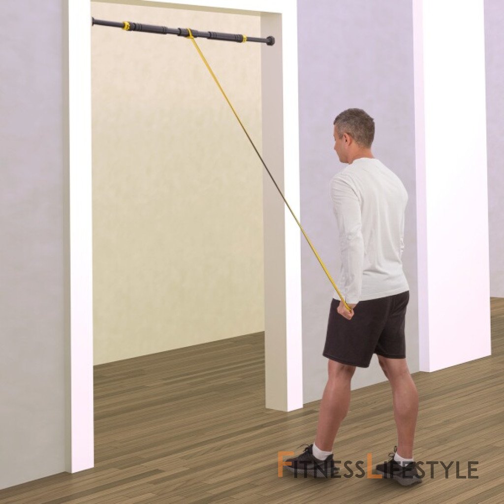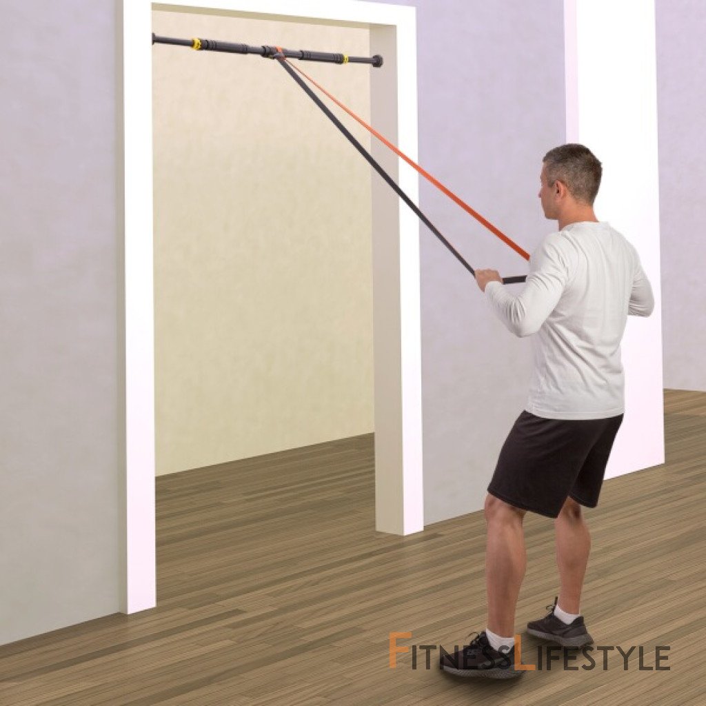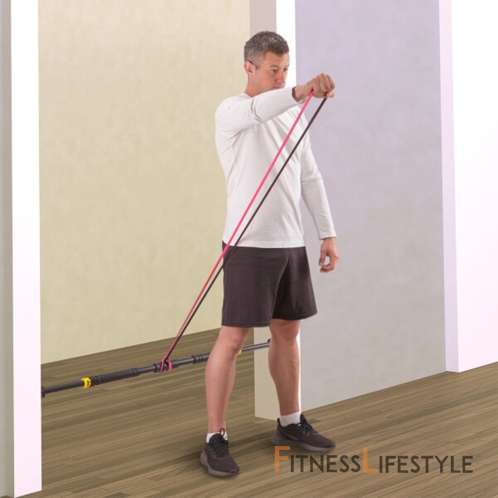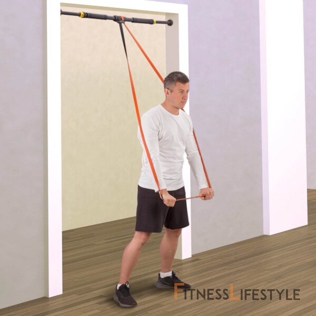 Pokiaľ chcete trénovať s gumami, častým problémom je nedostatok miesta na ich pripevnenie. S touto sadou také problémy nenastanú. Elastické gumy je možné veľmi ľahko pripevniť k hrazde a následne s ich pomocou vykonávať mnoho cvikov pre rôzne svalové skupiny. Cviky na hrudník, najširšie svaly chrbta, bicepsy, tricepsy alebo svaly nôh nebudú problém. S takou sadou môžete vykonávať komplexné cvičenia pre celé telo. Ďalšou výhodou je, že hrazda aj gumy sú výrobky najvyššej kvality.