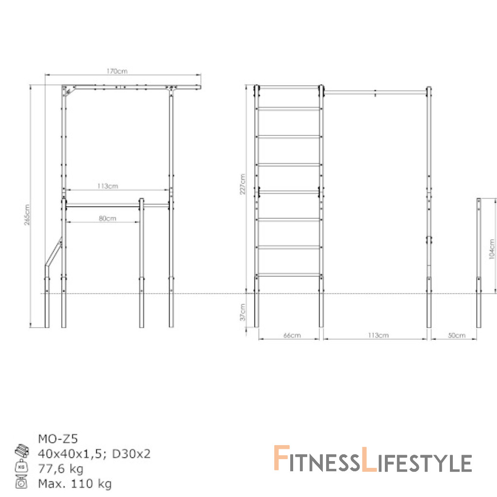 Až 226 cm vysoké, so 6-timi vodorovnými, 7-mi zvislými priečkami ak tomu s bradlami. Na vodorovných priečkach môžete robiť napríklad príťahy, na bradlách DIPy a posilňovať tak svaly hornej časti tela. Zvislé priečky sú skvelé okrem iného pre: