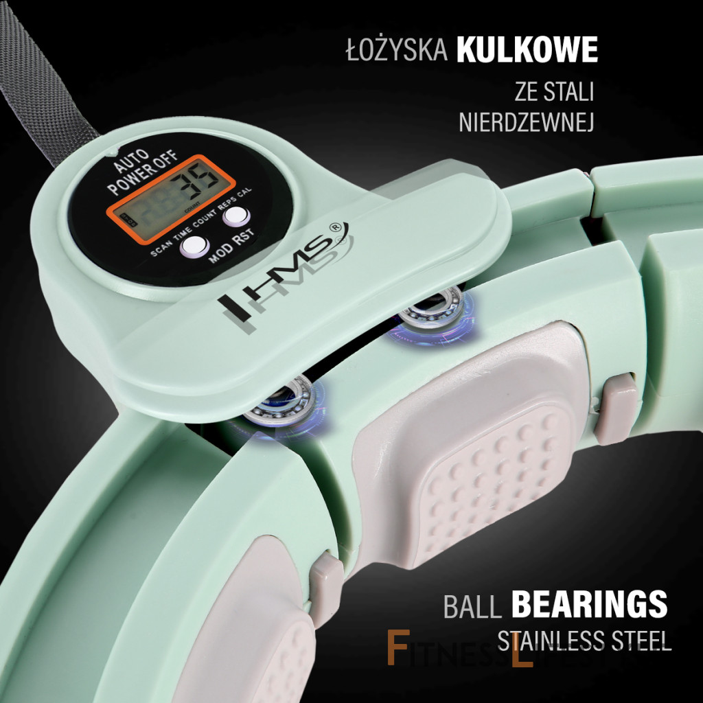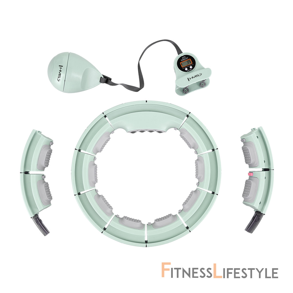 HMS HHM13 je obruč Hula s nastaviteľným obvodom, masážnymi výčnelkami, blokom pre rotujúce hmotnosti magnetickej masáže a číry pult.