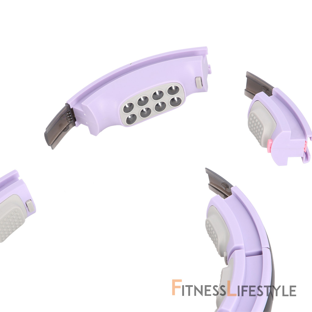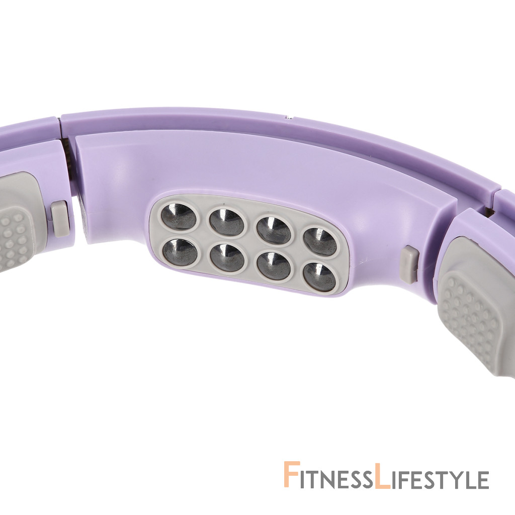 konštrukcia masáže Hula Hoop Stavba pozostáva z 12 rovnakých častí a jednej časti s magnetmi, ku ktorým sa pripájajú. Na zatvorenie obruče je potrebné použiť najmenej 9 dielov. Jednotlivé časti zakrývajú koľajnicu, ktorá sa vkladá pred zatvorením kotvy, ktorá je vybavená štyrmi kolesami guľovými ložiskami. Kotva je pomocou remienka na nastaviteľné dĺžky spojené s hmotnosťami s hmotnosťou 380 (+- 20) gramov. Reťazec je možné nastaviť na dĺžku 15 - 30 centimetrov, a to zmenou dĺžky reťazca, výsledná odstredivosť hmotnosti je nastavená - čím dlhšia je reťazec, tým „ťažšie“ bude hmotnosť.
