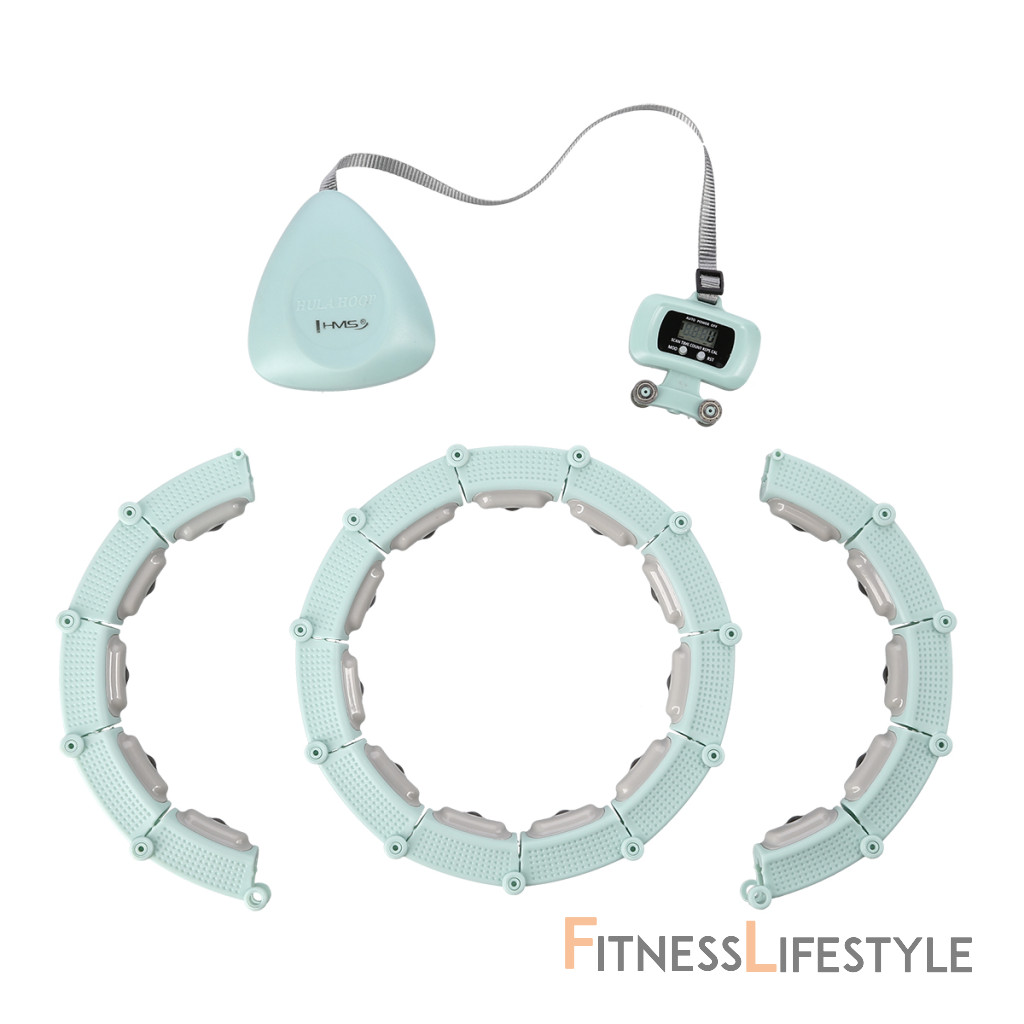 Súprava masážna hula hoop HMS HHM14 so závažím a počítadlom a zoštíhľujúceho pásu BR163 zelená | Fitness Lifestyle