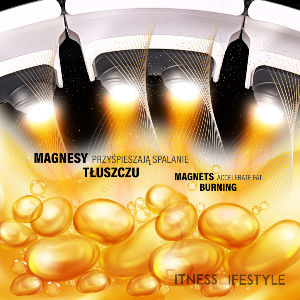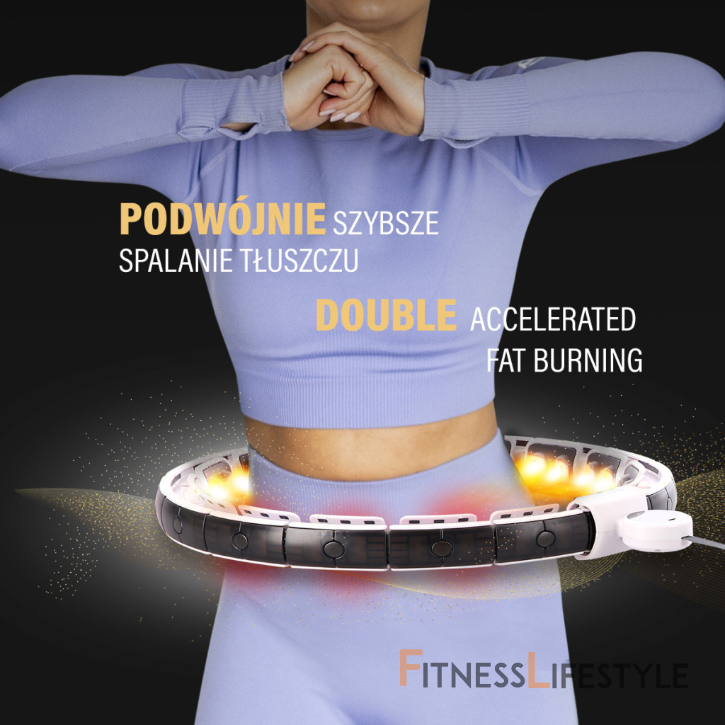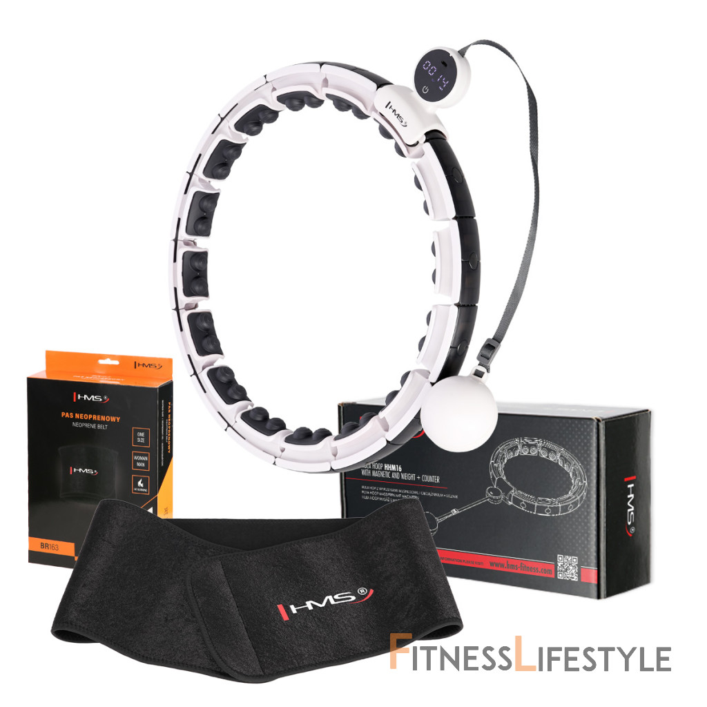 HMS HHM16 je hula hoop obruč s nastaviteľným obvodom, masážnymi magnetickými výstupkami, rotujúcim závažím a prehľadným, dobre čitateľným počítadlom. Konštrukcia masážneho hula hoopu Konštrukcia sa skladá z 16-tich rovnakých dielov ktoré sa spájajú pomocou plastových spojok. Aby šla obruč uzavrieť, tak je potrebné použiť najmenej 10 dielov. Jednotlivé diely v sebe skrývajú koľajnicu, do ktorej sa pred uzavretím zasunie kotva, ktorá je osadená štyrmi kolieskami s guličkovými ložiskami. Ku kotve je, pomocou dĺžkovo nastaviteľného remienka, pripojené závažie s hmotnosťou 300 gramov. Povrázok je možné nastaviť na dĺžku 20 až 38 centimetrov, zmenou dĺžky povrázku sa nastavuje výsledná odstredivá sila závažia - čím dlhší povrázok, tým "ťažšie" bude závažie. Magnetická masáž Každý diel HHM16 je z vnútornej strany vybavený dvoma masážnymi výstupkami, ktoré v sebe skrývajú magnet. Výstupky príjemne masírujú oblasť pása, tým sa pokožka prekrvuje a dochádza k narušovaniu a odbúravaniu tukového tkaniva. Záporne polarizované magnety podporujú prekrvovanie a tým majú pozitívny vplyv na funkciu metabolizmu. Používanie Dĺžka obruče sa nastaví podľa obvodu pása tak, aby bola dostatočne voľná, ale zároveň aby nepadala cez boky. Model HHM16 je vhodný pre obvod pása od 59-tich do 113-tich centimetrov. Po nastavení dĺžky sa do koľajnice vloží kotva so závažím a obruč sa uzavrie. Závažie sa následne „vrhne“ smerom, do ktorého budeme krútiť boky a začneme tréning. Intenzitu tréningu ovplyvňuje rýchlosť, akú krútime boky. Počítač s dobre čitateľným displejom a jeho funkcie Rozmerný a dobre čitateľný LCD displej umiestnený na kotve zobrazuje informácie o čase tréningu, počte spálených kalórií, a rýchlosti krúženia. Údaje je možné použiť na kontrolu tréningu a na sledovanie kondície. Počítač je napájaný akumulátorom, ktorý má dostatočnú kapacitu až pre 10 intenzívnych tréningov. Akumulátor sa dobíja pomocou USB-C konektora nad displejom. Na nabíjanie môžete použiť nabíjačku od telefónu, powerbanku, alebo napríklad notebook. O úrovni nabitia akumulátora informuje ukazovateľ pod displejom. Pravidelným používaním HMS HHM16: Neoprénový, zoštíhľujúci pás v balení Súčasťou sady je neoprénový, zoštíhľujúci pás HMS BR163, ktorý ešte viac podporí efekt chudnutia počas tréningu s HHM16. BR163 zároveň môžete nosiť aj počas každodenných aktivít alebo v práci. Môžu ho používať muži aj ženy. Funkcia BR163 Vďaka elastickému neoprénu a zapínaniu na suchý zips sa pás dokonale prispôsobí telu, priľne k oblasti pásu, a tak obmedzí ochladzovanie pokožky, zvýšením teploty pod pásom sa pokožka začne potiť a tým sa začnú narušovať tukové bunky. BR163 je z vnútornej strany opatrený sieťovinou, ktorá uľahčuje odvod potu a zaisťuje mikrocirkuláciu vzduchu. Parametre HHM16: Parametre BR163: Upozornenie: