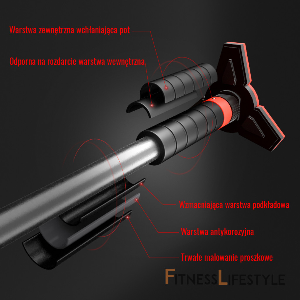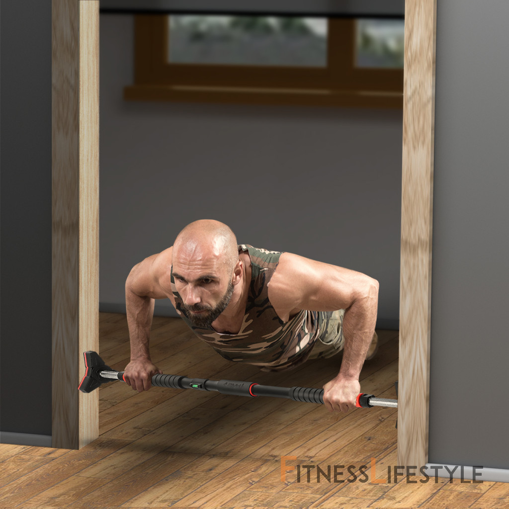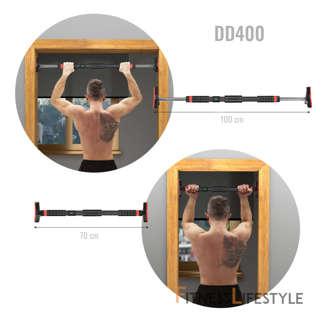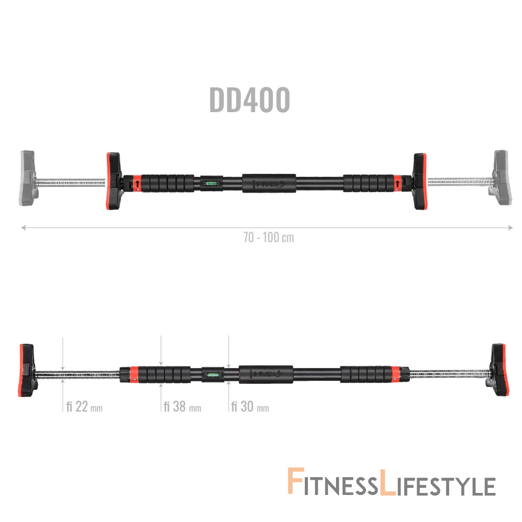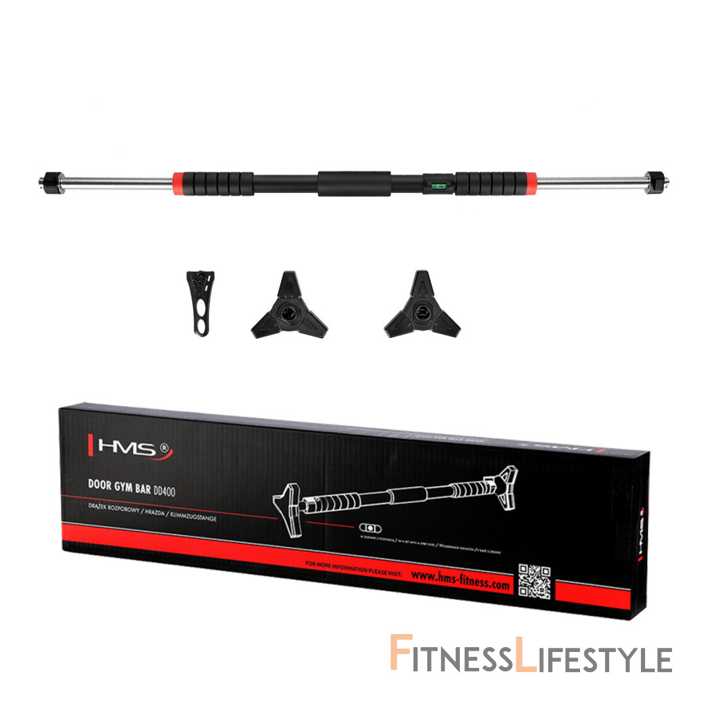 Hrazda do dverí HMS DD400 je dokonalým nástrojom pre posilnenie ramenných, chrbtových, brušných a prsných svalov. Je vyrobená z vysoko kvalitnej nerezovej ocele a vyznačuje sa pevnosťou a stabilitou, čo zaručuje bezpečnosť pri cvičení. Premyslená konštrukcia Hrazda DD400 sa skladá z hlavného oceľového dielu, ktorý je opatrený antikoróznym náterom a práškovým lakom. Úchopy sú vyrobené z EVA peny, ktorá je veľmi odolná, pohlcuje pot a zaisťuje pevný úchop. Do hlavného dielu sú vložené výsuvné tyče z nerezovej ocele, na ktoré sa nasadzujú robustné, trojuholníkové koncovky s vrstvou NBR. Tieto robustné koncovky majú hneď niekoľko výhod: Bezpečná montáž Po vytiahnutí hrazdy z balenia sa na jej konce nasadia koncovky. Hrazdu si na zemi roztiahneme tak, aby bola o niekoľko centimetrov kratšia, než je šírka zárubní a dotiahnutím čiernych matíc zaistíme dĺžku hrazdy. DD400 vložíme do zárubní, pomocou dodávanej vodováhy ju vyrovnáme a dotiahneme čierne matice. Akonáhle hrazda drží, tak si z koncoviek vytiahneme kľúč, ktorý si predĺžime pomocou nástavca a následne dotiahneme čierne matice tak, aby hrazda pevne držala. Nadstavec a vodováhu si uschováme na ďalšie použitie, kľúče nacvakneme späť do koncoviek a môžeme začať s tréningom. Široké možnosti tréningu Hrazda DD400 umožňuje vykonávať širokú škálu cvikov. Podľa toho, či je hrazda umiestnená vo výške hlavy alebo kolien, je možné trénovať príťahy, kľučky, dipy a tlaky, čo vám umožní meniť tréning a dosiahnuť požadované výsledky. Vďaka nemu zvýšite svoju silu, vytrvalosť a zlepšíte celkovú kondíciu. Parametre: Upozornenie: