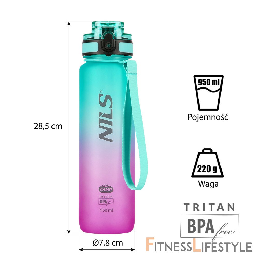 NILS Camp NCD04 je fľaša na vodu s objemom 950 ml a je vyrobená z tritánu. NCD04 bola navrhnutá tak, aby nás sprevádzala celým dňom. Vďaka stupnici na boku fľaše môžeme sledovať, ako si vedie náš pitný režim. Fľaša má odklápacie viečko, ktoré dobre tesní a voda tak zostane vo vnútri fľaše. Pokiaľ fľašu chceme otvoriť, potom musíme uvoľniť poistku a stlačiť tlačidlo, následne dôjde k uvoľneniu viečka. Súčasťou fľaše je vyberateľné, infúzne sitko, do ktorého je možné vložiť napríklad ovocie, alebo lístky mäty a kúsky citrónu. Praktické pútko na zápästie a očko, ktoré je súčasťou viečka, rozširujú možnosti prenášania fľaše. Tritan je veľmi odolný a ľahký materiál, neobsahuje BPA a do nápoja neuvoľňuje žiadne látky ani pachuť, bežne sa používa v potravinárskom priemysle a tiež sa z neho vyrábajú produkty pre dojčatá. Fľaša sa veľmi ľahko udržuje, možno ju používať aj na horúce nápoje a umývať v umývačke riadu. Na rozdiel od plastu si tritán zachováva svoje vlastnosti a estetiku po dlhú dobu. Tritánovú fľašu je možné naplniť horúcou tekutinou bez obáv z poškodenia. Tritánové fľaše sú tiež odolné voči mínusovým teplotám. Dokonca ani zmrazenie vody vo fľaši ju nepoškodí, ako je to v prípade plastu. Parametre: Upozornenie: