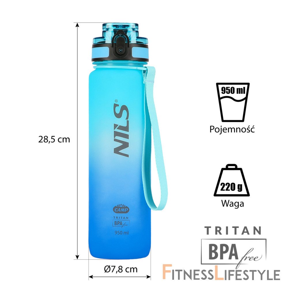 NILS Camp NCD04 je fľaša na vodu s objemom 950 ml a je vyrobená z tritánu. NCD04 bola navrhnutá tak, aby nás sprevádzala celým dňom. Vďaka stupnici na boku fľaše môžeme sledovať, ako si vedie náš pitný režim. Fľaša má odklápacie viečko, ktoré dobre tesní a voda tak zostane vo vnútri fľaše. Pokiaľ fľašu chceme otvoriť, potom musíme uvoľniť poistku a stlačiť tlačidlo, následne dôjde k uvoľneniu viečka. Súčasťou fľaše je vyberateľné, infúzne sitko, do ktorého je možné vložiť napríklad ovocie, alebo lístky mäty a kúsky citrónu. Praktické pútko na zápästie a očko, ktoré je súčasťou viečka, rozširujú možnosti prenášania fľaše. Tritan je veľmi odolný a ľahký materiál, neobsahuje BPA a do nápoja neuvoľňuje žiadne látky ani pachuť, bežne sa používa v potravinárskom priemysle a tiež sa z neho vyrábajú produkty pre dojčatá. Fľaša sa veľmi ľahko udržuje, možno ju používať aj na horúce nápoje a umývať v umývačke riadu. Na rozdiel od plastu si tritán zachováva svoje vlastnosti a estetiku po dlhú dobu. Tritánovú fľašu je možné naplniť horúcou tekutinou bez obáv z poškodenia. Tritánové fľaše sú tiež odolné voči mínusovým teplotám. Dokonca ani zmrazenie vody vo fľaši ju nepoškodí, ako je to v prípade plastu. Parametre: Upozornenie: