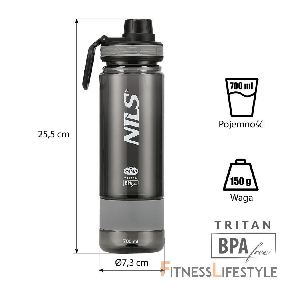 NILS Camp NCD07 je fľaša na vodu s objemom 700 ml a je vyrobená z tritánu. NCD07 bola navrhnutá tak, aby nás sprevádzala celým dňom. Fľaša má odklápacie viečko, ktoré dobre tesní a voda tak zostane vo vnútri fľaše. Praktické očko, ktoré je súčasťou viečka, rozširuje možnosť prenášania fľaše. Tritan je veľmi odolný a ľahký materiál, neobsahuje BPA a do nápoja neuvoľňuje žiadne látky ani pachuť, bežne sa používa v potravinárskom priemysle a tiež sa z neho vyrábajú produkty pre dojčatá. Fľaša sa veľmi ľahko udržuje, možno ju používať aj na horúce nápoje a umývať v umývačke riadu. Na rozdiel od plastu si tritán zachováva svoje vlastnosti a estetiku po dlhú dobu. Tritánovú fľašu je možné naplniť horúcou tekutinou bez obáv z poškodenia. Tritánové fľaše sú tiež odolné voči mínusovým teplotám. Dokonca ani zmrazenie vody vo fľaši ju nepoškodí, ako je to v prípade plastu. Parametre: Upozornenie: