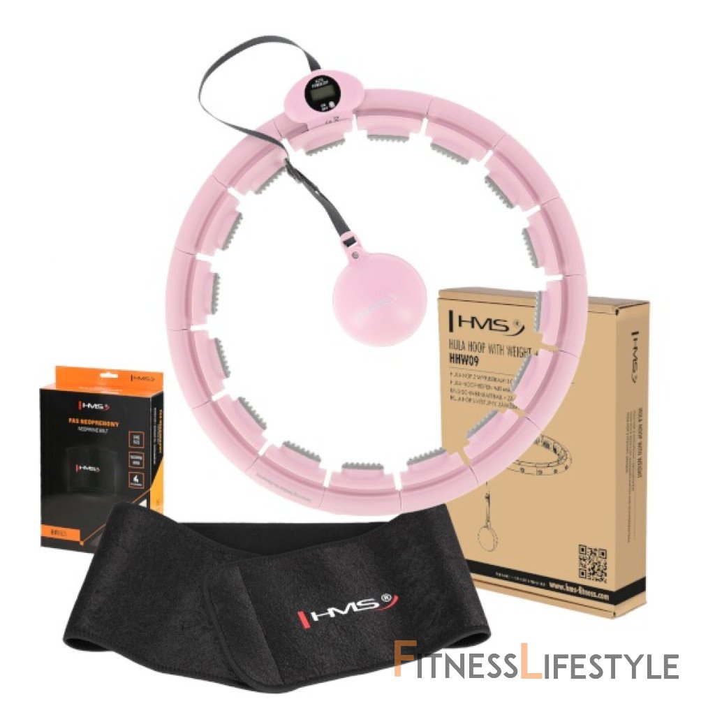 HMS HHW09 je hula hop obruč s nastaviteľnou dĺžkou, masážnymi výstupkami a rotujúcim závažím. Ako funguje skladacia obruč so závažím Funkcia obruče HMS HHW09 je veľmi jednoduchá. Konštrukcia sa skladá z 16 rovnakých dielov ktoré sa do seba skladajú. Aby išla obruč uzavrieť, tak je potrebné použiť najmenej 14 kusov, ktoré následne vytvoria kruh s vnútorným priemerom 24 centimetrov, pokiaľ spojíte všetkých 16 kusov, potom bude vnútorný priemer 29 centimetrov. Model HHW09 je vhodný pre obvod pása od 76 do 91 centimetrov. Jednotlivé diely v sebe skrývajú koľajnicu, do ktorej sa pred uzavretím zasunie kotva s počítadlom, ktorá je osadená štyrmi guličkovými ložiskami. Displej počítadla zobrazuje počet obkrúžení obruče kotvou. Ku kotve je, pomocou dĺžkovo nastaviteľného povrázku, pripojené závažie s hmotnosťou 380 gramov. Povrázok je možné nastaviť na dĺžku 22 až 38 centimetrov, zmenou dĺžky povrázku sa nastavuje výsledná odstredivá sila závažia - čím dlhší povrázok, tým "ťažšie" bude závažie. Príprava na tréning Dĺžka obruče sa nastaví podľa obvodu pása tak, aby bola dostatočne voľná, ale zároveň aby nepadala cez boky. Po nastavení dĺžky sa obruč uzamkne pomocou spojovacieho dielu, ktorý je osadený páčkou na ovládanie zámku. Závažie sa následne „vrhne“ smerom, do ktorého budeme krútiť boky a začneme tréning. Obruč HHW09 je z vnútornej strany vybavená masážnymi výstupkami s pružinami, ktoré tlmia vibrácie od pohybujúcej sa kotvy a zároveň príjemne masírujú oblasť pása. Intenzitu tréningu ovplyvňuje dĺžka povrázku a rýchlosť, akú krútime boky. Spaľovanie kalórií a posilnenie stredu tela Pravidelné používanie HMS HHW09 dokáže zoštíhliť brucho a pás, krútenie bokmi redukuje tukového tkaniva stehien a zadku. Rytmický pohyb zapája do tréningu hlboké brušné svaly a svaly panvového dna. Intenzívny tréning urýchľuje metabolizmus a počas krátkeho času spálite ohromné množstvo kalórií – pri klasickom hule hoop to je až 200 kcal za 30 minút, so závažím je počet ešte vyšší. Neoprénový, zoštíhľujúci pás v balení Súčasťou sady je neoprénový, zoštíhľujúci pás HMS BR163, ktorý ešte viac podporí efekt chudnutia počas tréningu s HHW09. BR163 zároveň môžete nosiť aj počas každodenných aktivít alebo v práci. Môžu ho používať muži aj ženy. Funkcia BR163 Vďaka elastickému neoprénu a zapínaniu na suchý zips sa pás dokonale prispôsobí telu, priľne k oblasti pásu, a tak obmedzí ochladzovanie pokožky, zvýšením teploty pod pásom sa pokožka začne potiť a tým sa začnú narušovať tukové bunky. BR163 je z vnútornej strany opatrený sieťovinou, ktorá uľahčuje odvod potu a zaisťuje mikrocirkuláciu vzduchu. Parametre HHW09: Parametre BR163: Upozornenie: