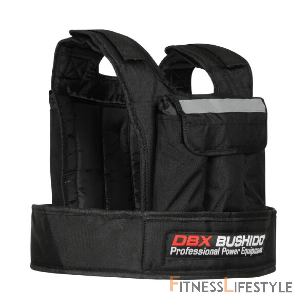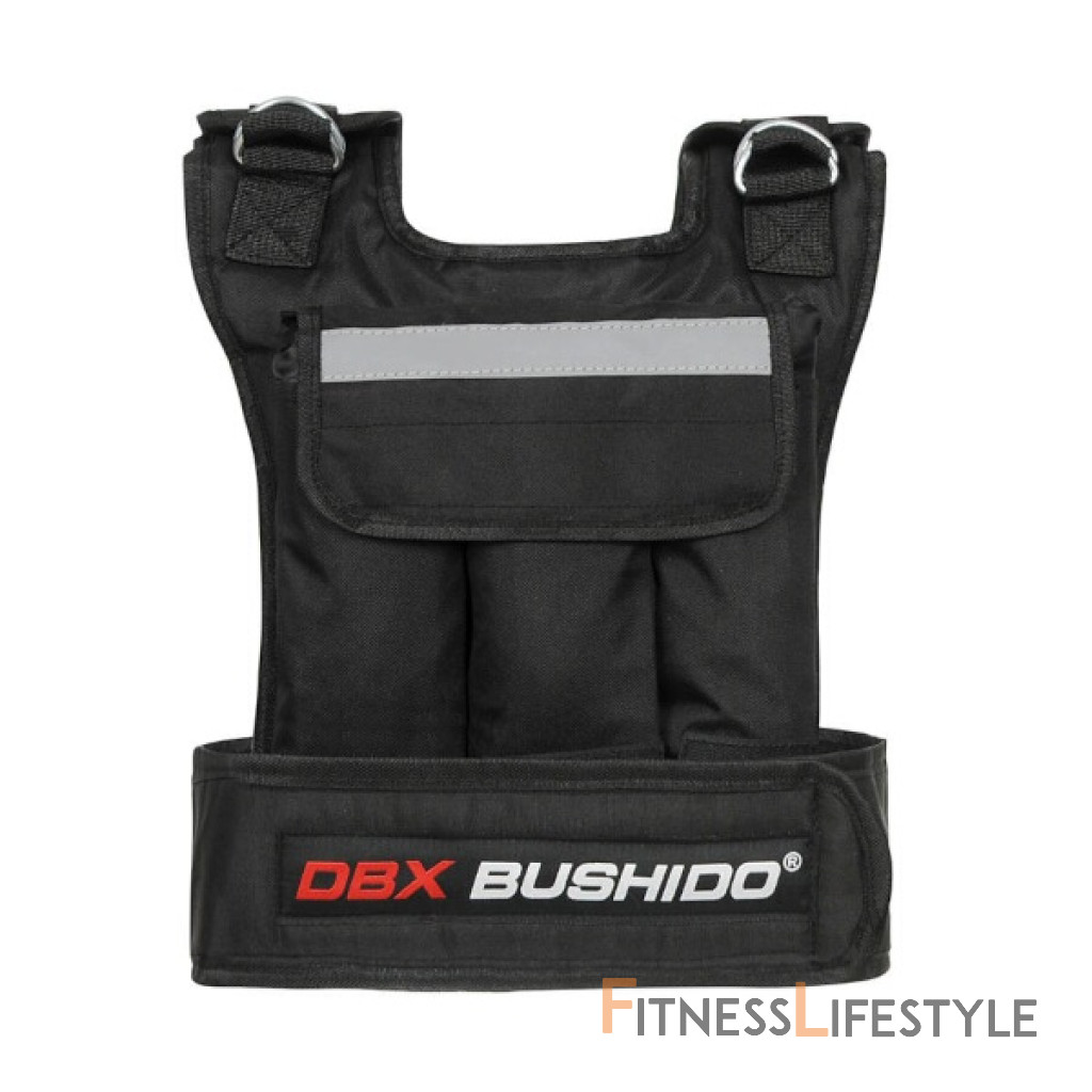 Záťažová vesta DBX BUSHIDO DBX-W-6B.3 nájde uplatnenie pri tréningu profesionálnych športovcov, alebo pri rekreačnom tréningu. Jej hlavnou funkciou je dodatočná záťaž svalov počas fyzickej aktivity. Použitím záťažovej vesty dosiahneme rýchlejšie požadované výsledky. Vesta disponuje 6-timi vreckami - 3 vrecká na prednej strane a 3 vrecká na zadnej strane - vrecká sú prekryté lemom so suchým zipsom. Vložka sa skladá z odolného "púzdra" so zipsom, ktorý je prekrytý manžetou so suchým zipsom. Náplň vreciek je dodávaná v samostatnom balíku a tvoria ju oceľové, pozinkované "šošovky". Pred prvým použitím je potrebné naplniť kapsičky granulátom podľa aktuálnych požiadaviek na celkovú hmotnosť. Do každého vrecka sa zmestí až 3,5 kilogramov záťaže. Dva postranné popruhy umožňujú dokonalé prispôsobenie vesty postave. Pri správnom nastavení drží pevne na svojom mieste a zároveň umožňuje maximálnu voľnosť pohybu. DBX-W-6B.3 je vyrobená zo špeciálne tkaného polyesteru - Codury, ktorý je extrémne odolný na roztrhnutie a predrenie. Codura sa používa aj na výrobu turistických batohov, nepriestrelných viest a motorkárskych odevov. Na vnútornú stranu bol použitý príjemný a hladký materiál. V hornej polovici je vesta doplnená o reflexný pásik, ktorý zvyšuje bezpečnosť za šera a tmy - vesta je teda ideálnym doplnkom napríklad pre bežcov. Parametre: Upozornenie: