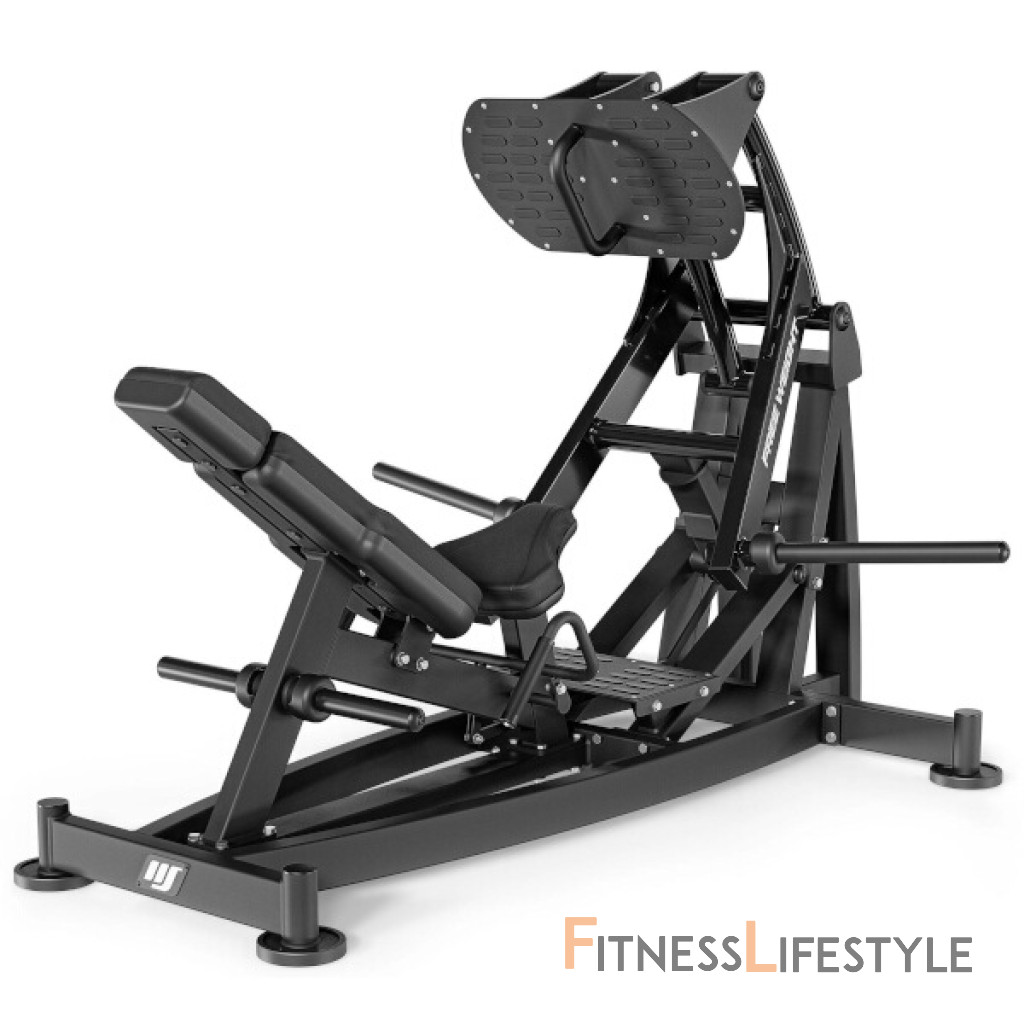 MARBO Sport MF-U013 2.0 je stroj na posilnenie kvadricepsov (štvorhlavých svalov stehenných) - Leg Press zo série strojov Free Weight. Hlavný rám je vyrobený z oceľových profilov 100 x 50 x 3 milimetre, vedľajšie prvky konštrukcie sú z profilu 100 x 40 x 3 milimetre. Použité materiály garantujú nosnosť až 400 kilogramov, ide teda o stroj vhodný do komerčných priestorov. Rôzne polohy pre komplexné precvičenie stehenného svalstva Leg Press sa používa na izolované cvičenie štvorhlavých stehenných svalov. V závislosti na polohe nôh pri cvičení na stroji na kľučky nôh sme schopní aktivovať rôzne hlavy štvorhlavého svalu stehenného. Ovládanie a funkcie MF-U013 2.0 Po naložení požadovanej váhy na tŕne Leg Pressu sadneme na sedák, oprieme sa a chodidlá položíme na robustnú, čierno lakovanú dosku s gumovými, protišmykovými plôškami. Platformu ľahko nadvihneme a pomocou úchopov pod sedákom odistíme poistku pre plný rozsah pohybu platformy. Pri modeli MF-U013 2.0 nehrozí riziko zranenia, platforma nie je posuvná, ale otočná, takže aj keď váhu už neunesieme, tak sa platforma zastaví o rám a stále môžeme bez problémov od stroja odísť. Vďaka zdvojenému systému vedenia je doska stále rovnobežne s chrbtovou opierkou. Zosílené čalúnenie Čalúnenie z odolnej, syntetickej kože je na každom okraji čalúneného prvku zdvojené a prešité veľmi pevnou, režnou niťou značky COATS. Čalúnenie je zo spodnej strany uložené v krytoch z odolného plastu v čiernej farbe. Tie chránia čalúnenie pred poškodením a dodávajú jednotke nevšedný, moderný dizajn. Nakladacie tŕne potiahnuté polyamidom Stroj je vybavený nakladacími tŕňmi potiahnutými polyamidom. Vďaka použitiu polyamidu je povrch odolný proti poškriabaniu a mechanickému poškodeniu, a to aj pri častom nasadzovaní a odnímaní závaží. Ako záťaž sa používajú olympijské kotúče s priemerom otvoru 50 mm, ktorými je určite vybavená každá posilňovňa. Rukoväte potiahnuté penou Pri navrhovaní radu Free Weight sme urobili všetko pre to, aby sme zaistili maximálne pohodlie pri cvičení! Rukoväte sme pokryli vrstvou hrubej a pevnej peny, aby sme užívateľom zaistili pohodlný a bezpečný úchop. Konce rukovätí sme opatrili sústruženou kovovou objímkou v čiernej farbe. Gumové nôžky Stroj je vybavený nožičkami zo silnej gumy, ktoré zaisťujú stabilitu pri cvičení. Vďaka gumovým nožičkám si môžete byť istí, že stroj nepoškriabe podlahu. Parametre: Upozornenie: