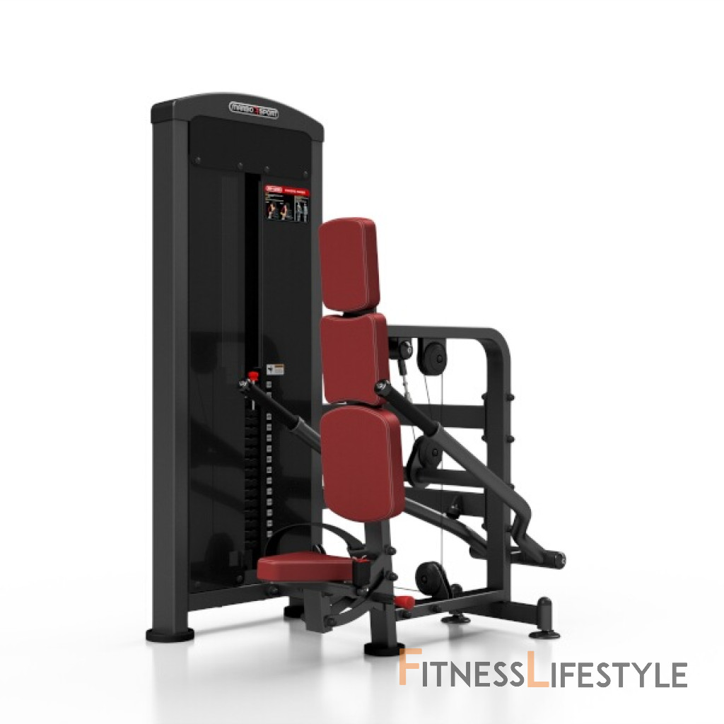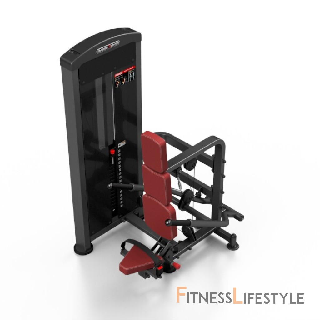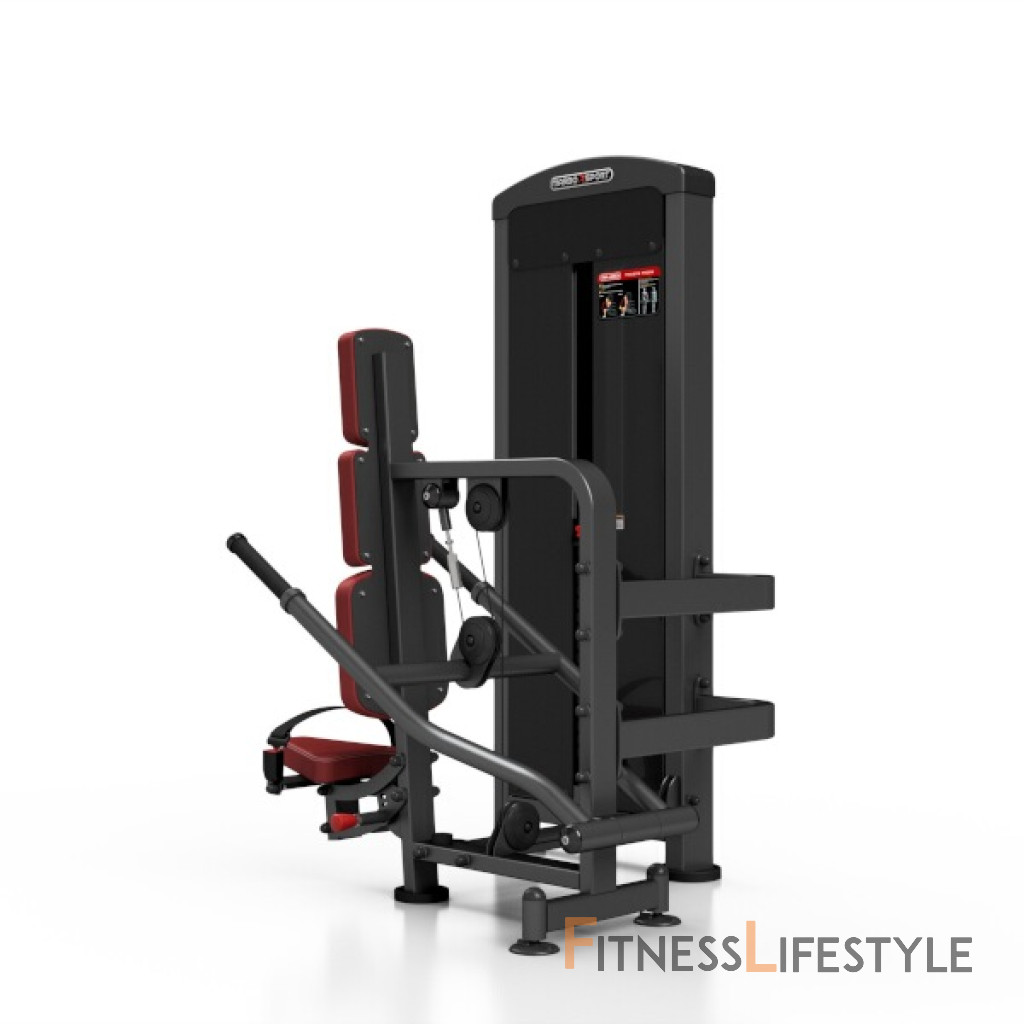 Dips Press MARBO MP-U233 je nekompromisné, profesionálne vybavenie pre Vašu posilňovňu. Na výrobu boli zvolené oceľové profily 120x60x3mm a 80x40x3mm, ktoré zaručujú nečakanú trvanlivosť. Záťaž tvorí 16ks 10kg tehál. Celková váha závažia dodávaná so strojom je teda 160kg. Sedadlo je možné výškovo nastaviť za použitia červeného, pružinového kolíka. Na zaistenie sedenia je stroj vybavený bezpečnostným pásom. Polstrovanie je zo syntetickej kože zošitej režnou niťou značky COATS vyplnené tvrdou penou, to celé je na 3mm hrubej, oceľovej doske. Tichý chod zaisťuje zakrytovanie čiernym plastom, z prednej časti je kryt opatrený priehľadom pre ľahké nastavenie požadovaného počtu tehál. Stroj je navyše opatrený veľkou samolepkou, ktorá inštruuje cvičencov, aké cviky idú na stroji vykonávať a ktoré skupiny svalov daný cvik posilňuje.