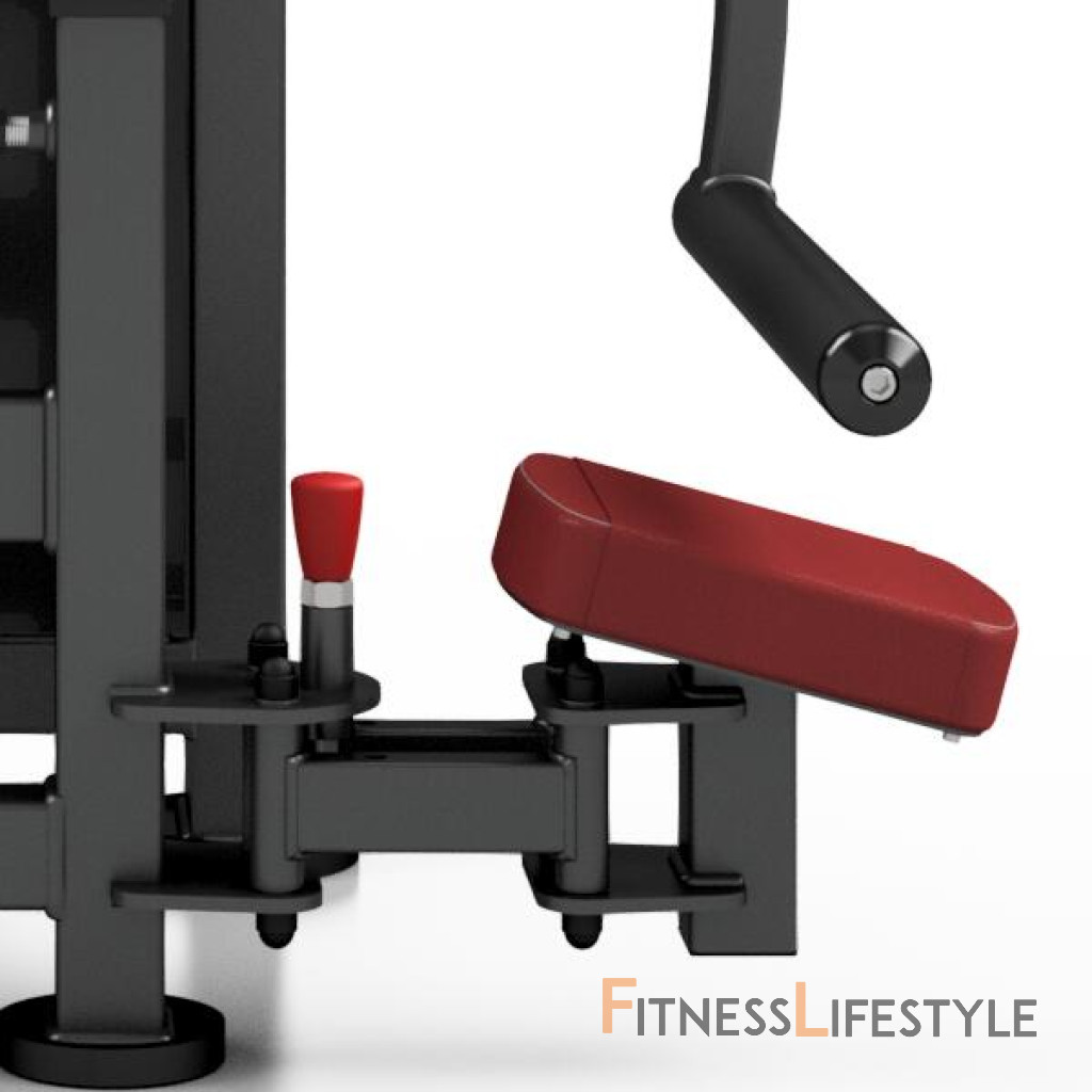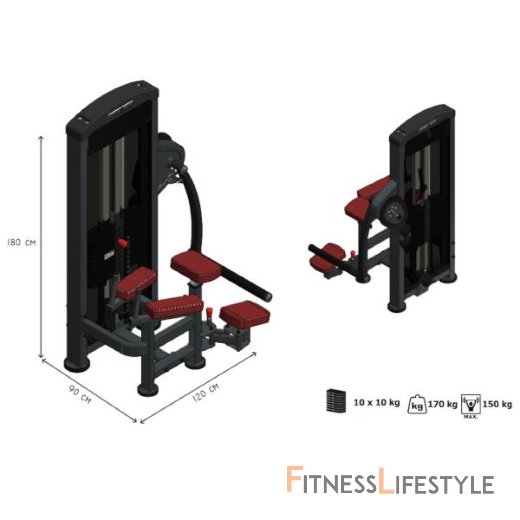 Posilňovač sedacích svalov MARBO MP-U222 je nekompromisné, profesionálne vybavenie pre Vašu posilňovňu. Na výrobu boli zvolené oceľové profily 120x60x3mm a 80x40x3mm, ktoré zaručujú nečakanú trvanlivosť. Záťaž tvorí 10ks 10kg tehál. Celková váha závažia dodávaná so strojom je teda 100kg a je možné ju rozšíriť až na 160kg. Napínanie laniek sa vykonáva reguláciou 4 skrutiek na hlavnom vodiacom kolese. Odpadá tak zložité rozoberanie stroja. Polstrovanie je zo syntetickej kože zošitej režnou niťou značky COATS vyplnené tvrdou penou, to celé je na 3mm hrubej, oceľovej doske. Tichý chod zaisťuje zakrytovanie čiernym plastom, z prednej časti je kryt opatrený priehľadom pre ľahké nastavenie požadovaného počtu tehál. Stroj je navyše opatrený veľkou samolepkou, ktorá inštruuje cvičencov, aké cviky idú na stroji vykonávať a ktoré skupiny svalov daný cvik posilňuje.