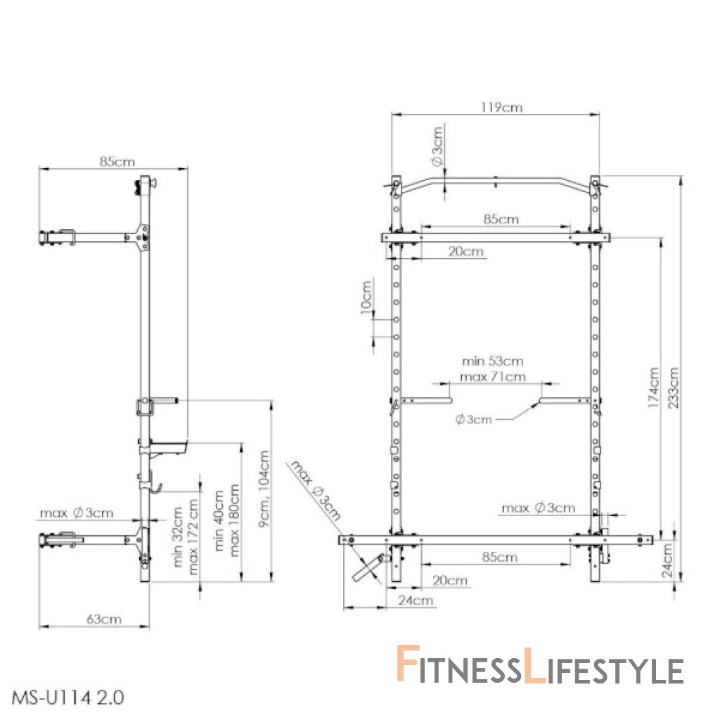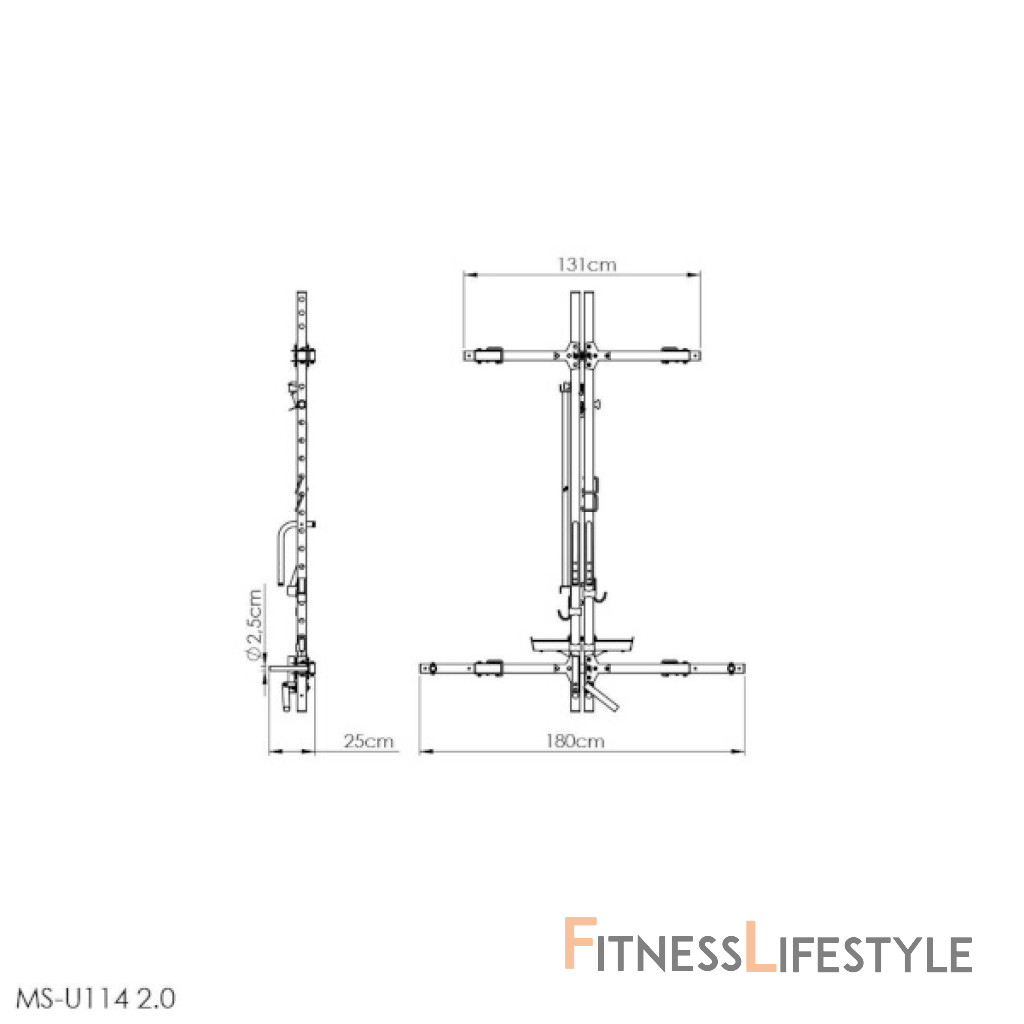 MS-U114 2.0 je vybavený výškovo nastaviteľnými hákmi, ktoré umožňujú odloženie činky, a prídavnými hákmi na zaistenie bezpečnosti pri tréningu - napríklad pri bench presse. Vďaka možnosti nastavenia výšky hákov až v 15 úrovniach získate slobodu odložiť činku v optimálnej výške pre práve vykonávaný cvik a zároveň získať lepšiu východiskovú pozíciu pre ďalšiu sériu.