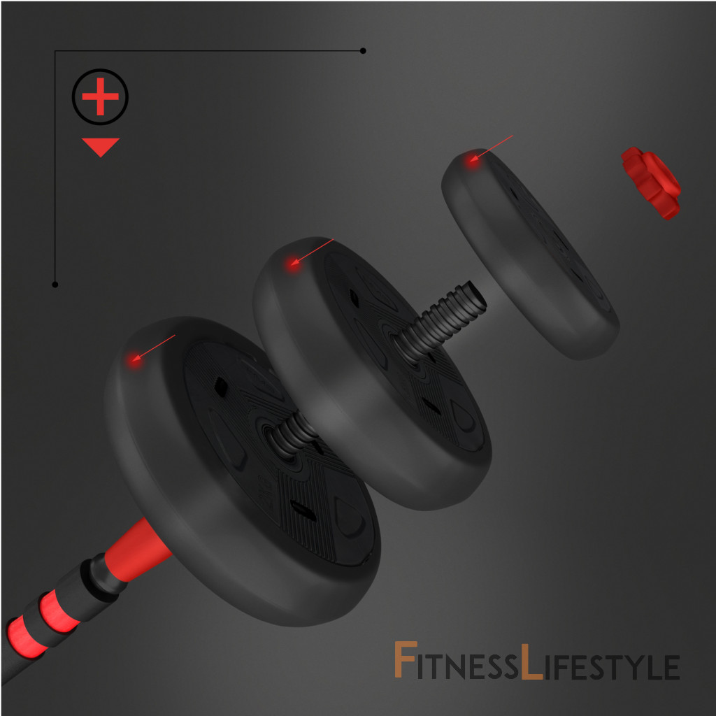 Ide o základný prvok každej posilňovne. Na os si z kotúčov vyskladáte potrebnú hmotnosť a zaistíte ich skrutkovacími uzávermi.