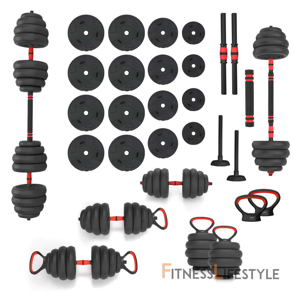 Ide o základný prvok každej posilňovne. Na os si z kotúčov vyskladáte potrebnú hmotnosť a zaistíte ich skrutkovacími uzávermi.