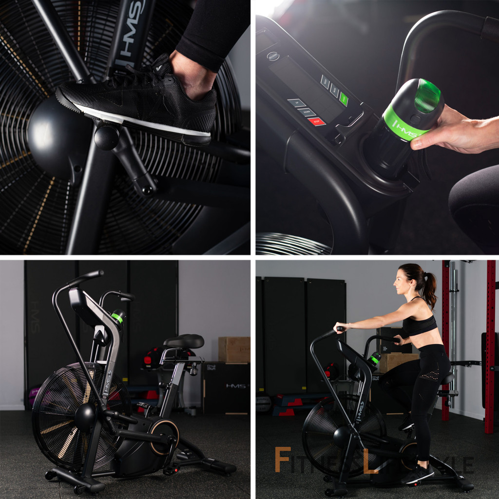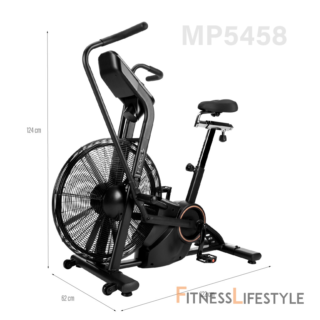 Air Bike HMS MP5458 sa vyznačuje tým, že má pohyblivé ramená, ktoré nútia pracovať paže, takže sa do tréningu zapájajú aj svaly hornej polovice tela. Tréning na Air Biku posilňuje obe nohy, paže, hrudník, chrbát a brucho. HMS MP5458 má brzdný systém tvorený odporom vzduchu, čo znamená, že čím rýchlejšie šliapete, tým väčšie je zaťaženie. Vďaka tomu sa bicykel prispôsobuje nášmu tempu a úrovni kondície.