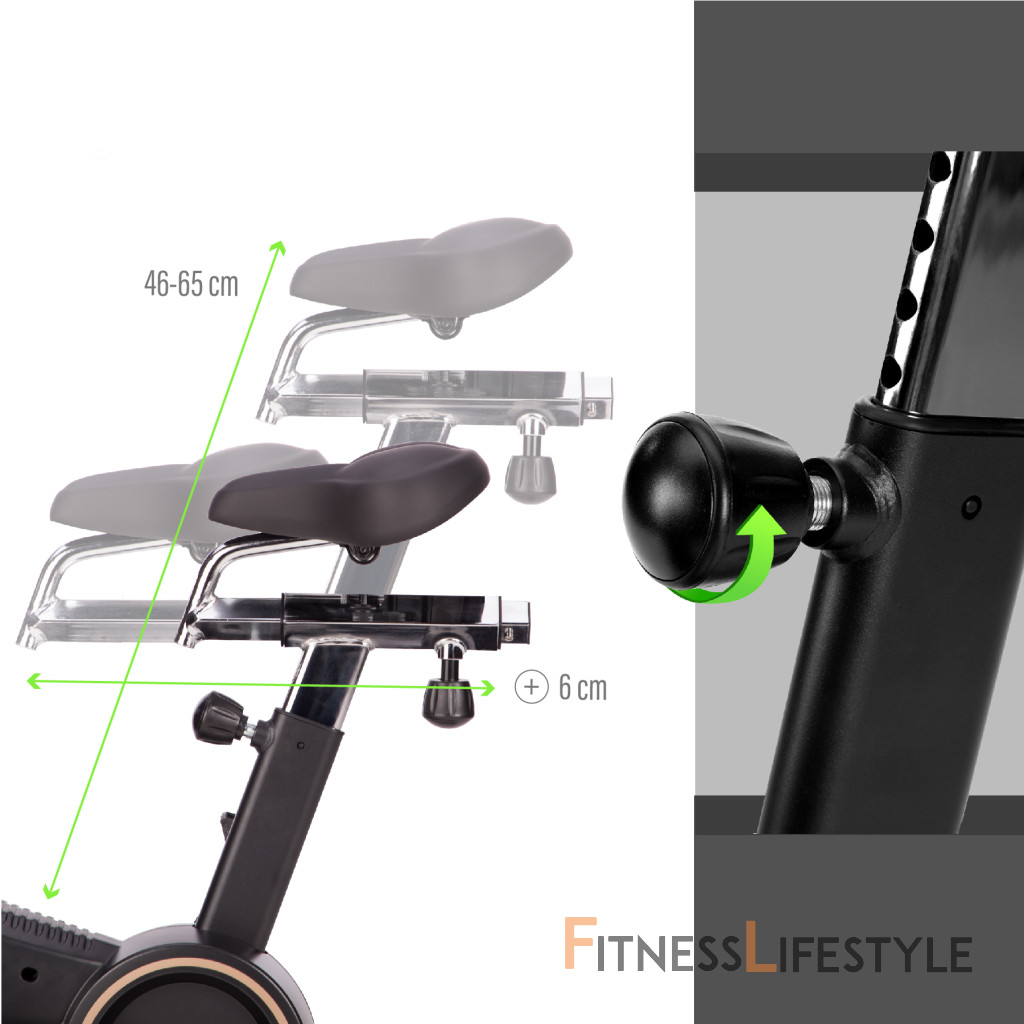Air Bike MP5458 umožňuje nastaviť sedlo tak, aby vyhovovalo vašej výške a preferenciám. Sedlo môžete ručne nastaviť vertikálne aj horizontálne, takže si môžete nájsť optimálnu polohu pre svoj tréning. Sedlo je pohodlné a ergonomické. Bolo potiahnuté syntetickou kožou pre väčšiu odolnosť a ľahké čistenie.