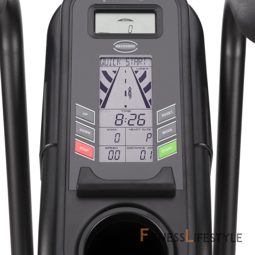 Air Bike MP5458 je vybavený počítačom s LCD displejom, na ktorom si môžete skontrolovať všetky kľúčové parametre tréningu, ako je čas, vzdialenosť, rýchlosť, pulz, spálené kalórie a otáčky za minútu. Vďaka tomu môžete sledovať svoj pokrok a upravovať intenzitu tréningu podľa svojich cieľov a možností. Displej je dobre čitateľný a podsvietenie, takže môžete trénovať aj pri slabom osvetlení.