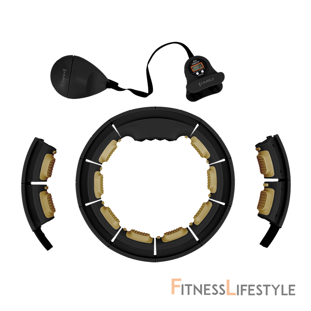 HMS HHM13 je obruč Hula s nastaviteľným obvodom, masážnymi výčnelkami, blokom pre rotujúce hmotnosti magnetickej masáže a číry pult.