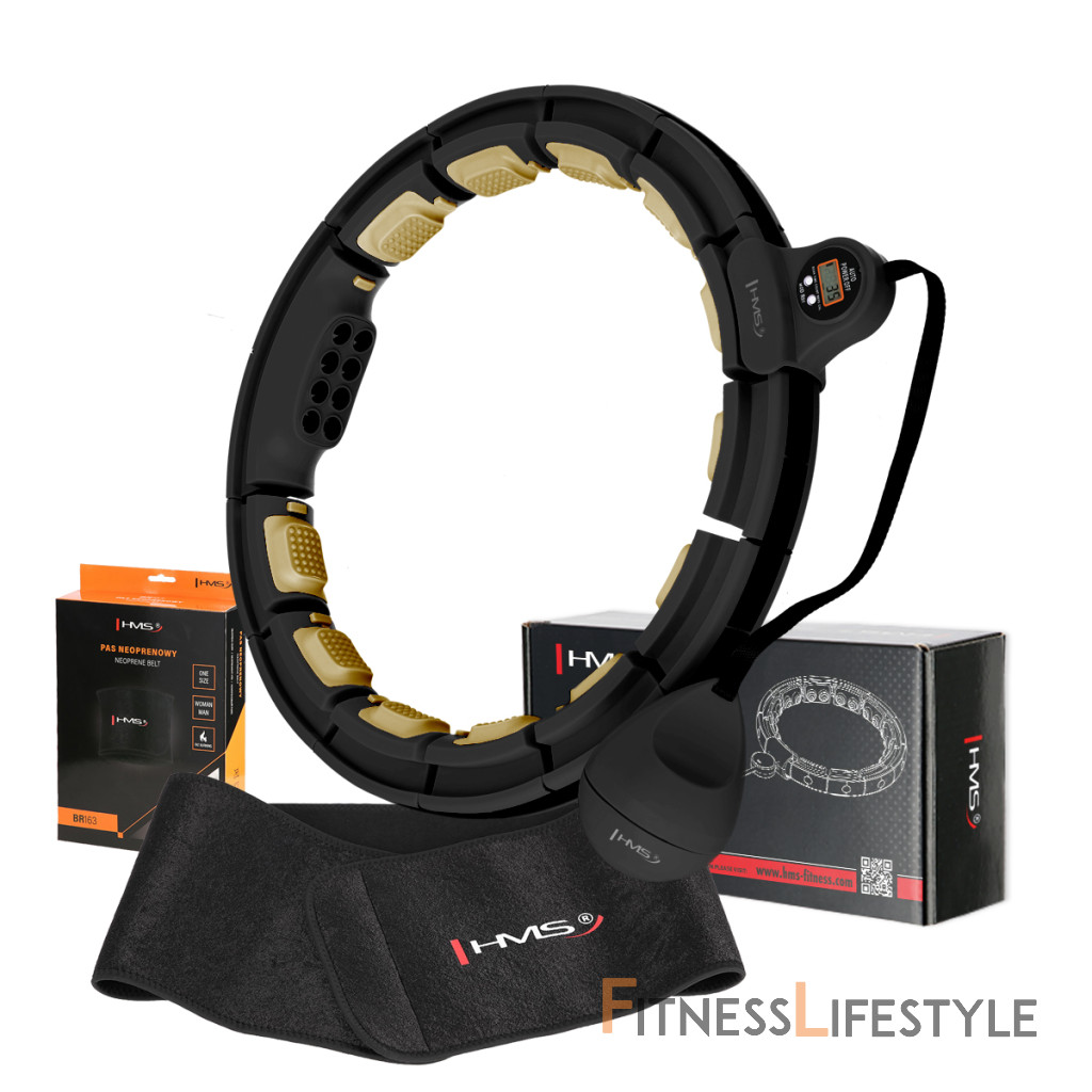 Súprava masážna hula hoop HMS HHM13 so závažím, magnetmi a počítadlom a zoštíhľujúceho pásu BR163 čierna | Fitness Lifestyle