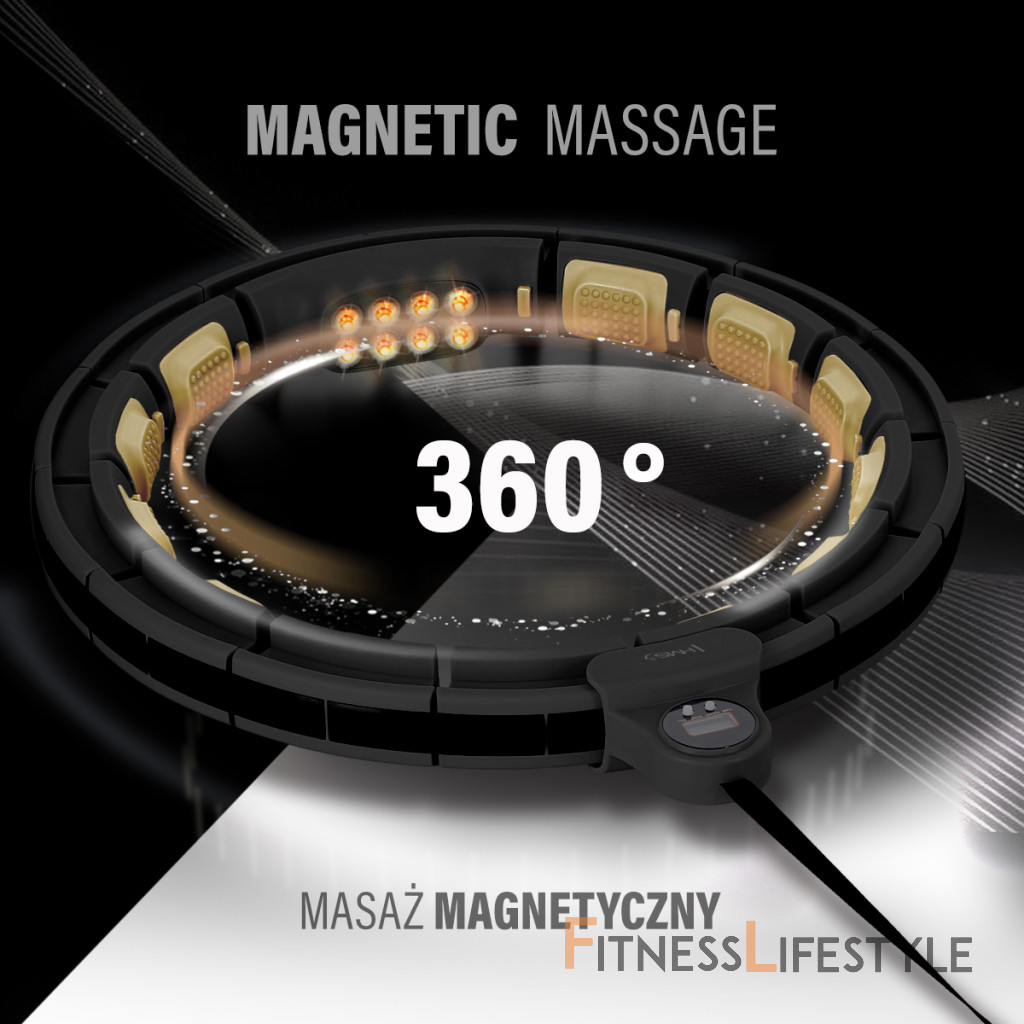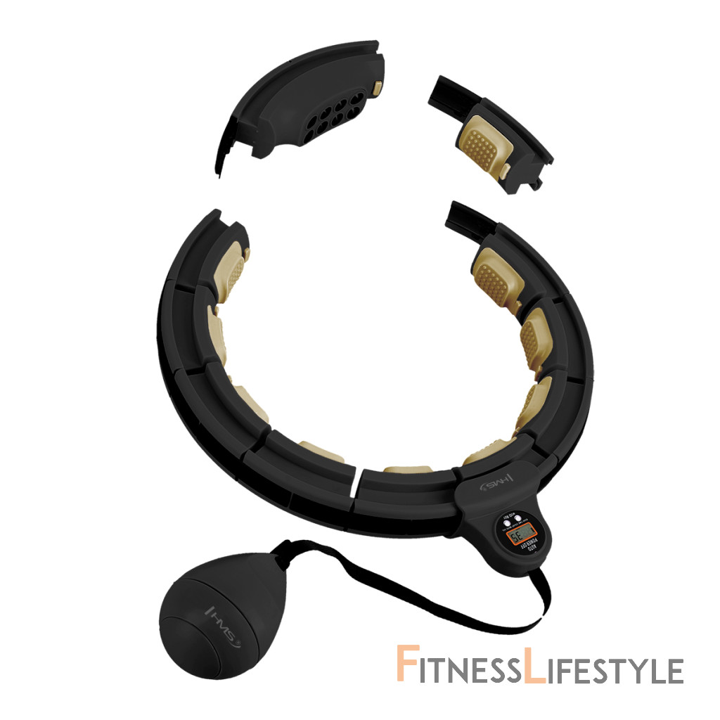 HMS HHM13 je obruč Hula s nastaviteľným obvodom, masážnymi výčnelkami, blokom pre rotujúce hmotnosti magnetickej masáže a číry pult.