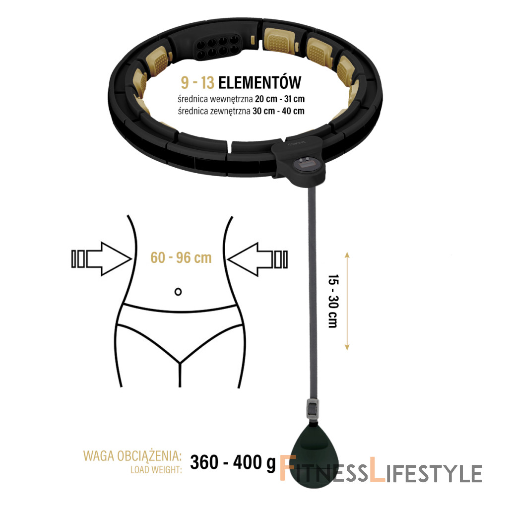 Dĺžka obruče je nastavená podľa obvodu pásu tak, aby bola dosť voľná, ale zároveň nespadá cez boky. HHM13 je vhodný na obvod pásu od 60 do 96 centimetrov. Po nastavení dĺžky sa do koľajnice vkladá kotva s hmotnosťou a obru je zatvorená. Hmotnosť potom „hodí“ smer, do ktorého skrútime boky a začneme trénovať. Intenzita tréningu ovplyvňuje rýchlosť, ktoré krútime boky a dĺžku reťazca, na ktorej sú pripevnené hmotnosti.