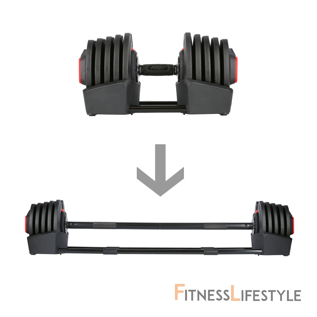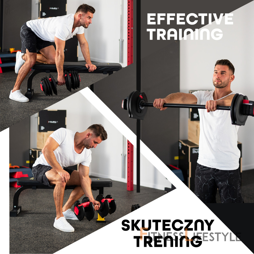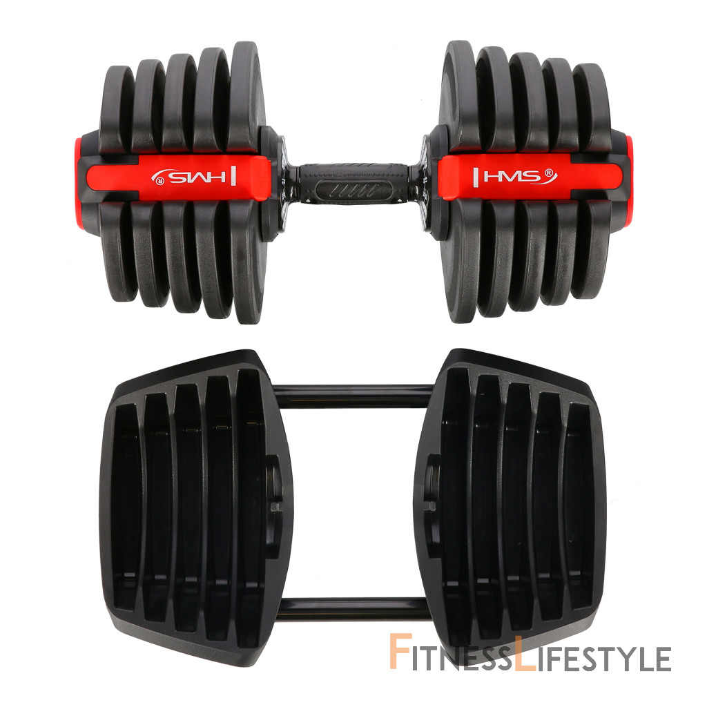 HMS SGR40 PRO SET 2v1 je sada variabilná - nastaviteľné činky s možnosťou zostavenia ako jednoručná, alebo obojručná činka.
