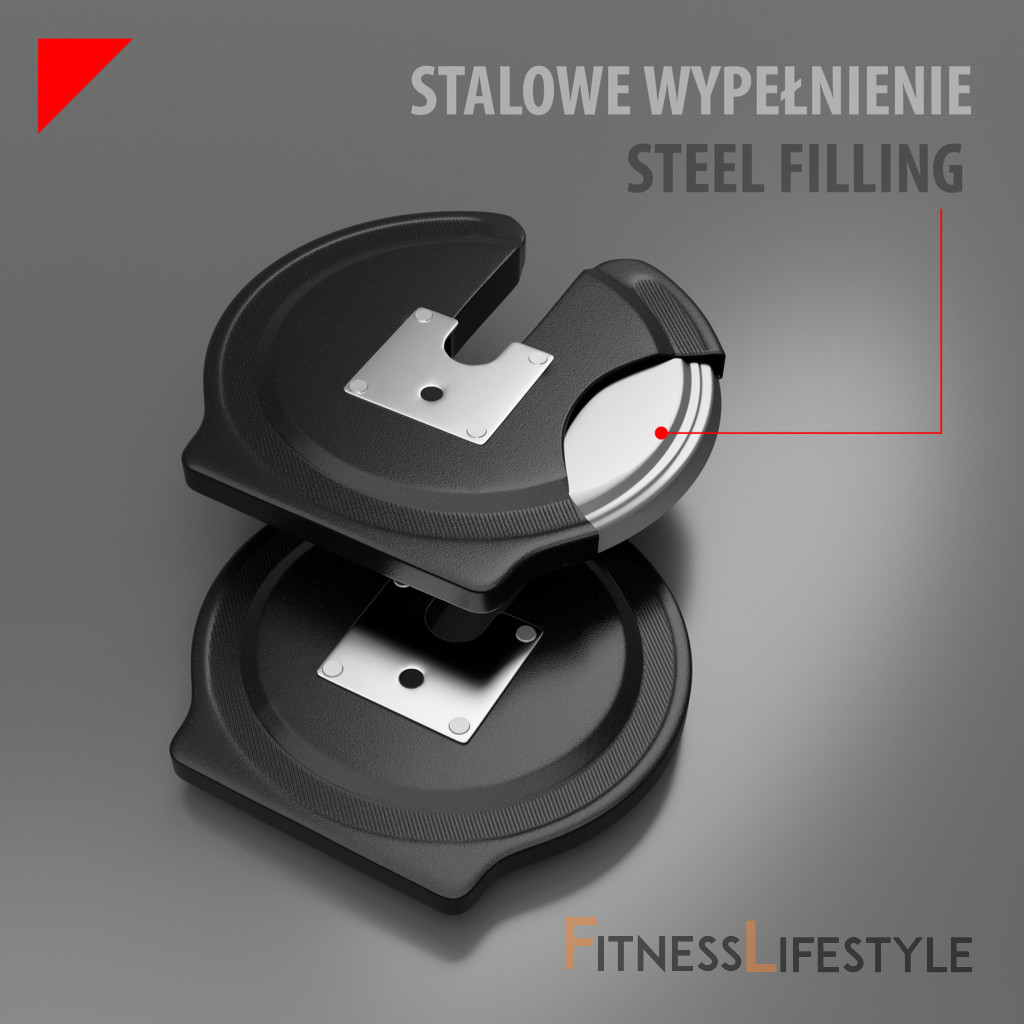 Tréning s jednoručnou činkou umožňuje väčšiu voľnosť pohybu a lepšiu stabilizáciu tela. Cviky môžete vykonávať v rôznych rovinách a smeroch, čo zapája viac svalov a zlepšuje koordináciu. S činkou môžete precvičovať rôzne časti tela, napríklad hrudník, chrbát, ramená, paže, brucho, nohy alebo zadok. Nepotrebujete viac činiek s rôznou hmotnosťou, stačí vám jedna, ktorú môžete prispôsobiť svojej úrovni a účelu. V tomto variante je možné nastaviť hmotnosť činky na 2 - 7 - 10 - 12 - 15 - 17 - 18 - 20 - 22 - 24 - 26 - 28 - 31 - 33 - 35 - 40 kg.