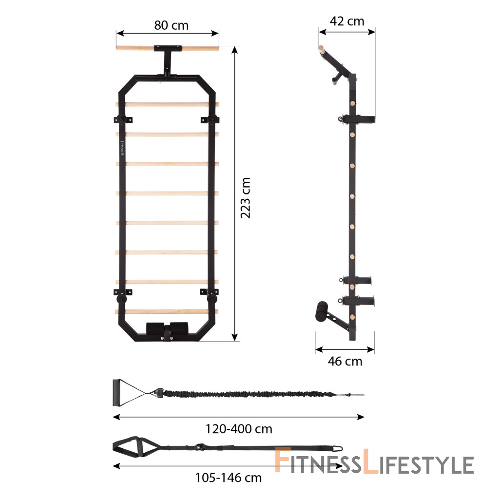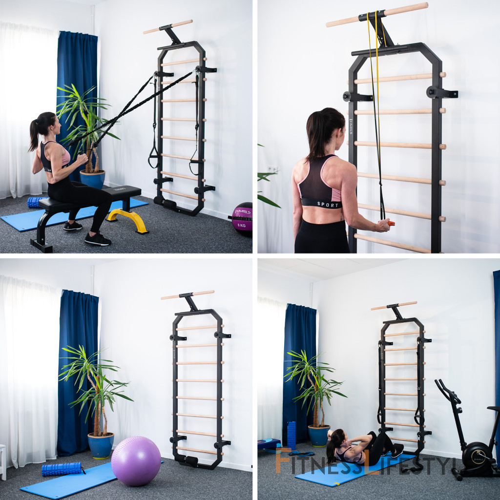 DW2708 vyzerá veľmi esteticky a zapadá do akéhokoľvek interiéru. Gymnastické rebrá majú elegantný dizajn. Vďaka kombinácii čiernej farby a drevených oddielov sa DW2708 hodí do každej steny. Sada DW2708 nie je len cvičebné vybavenie, ale aj dekorácia domácnosti.