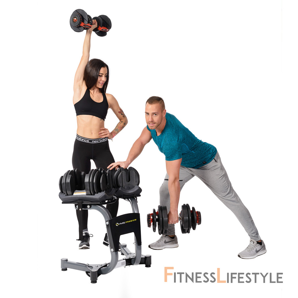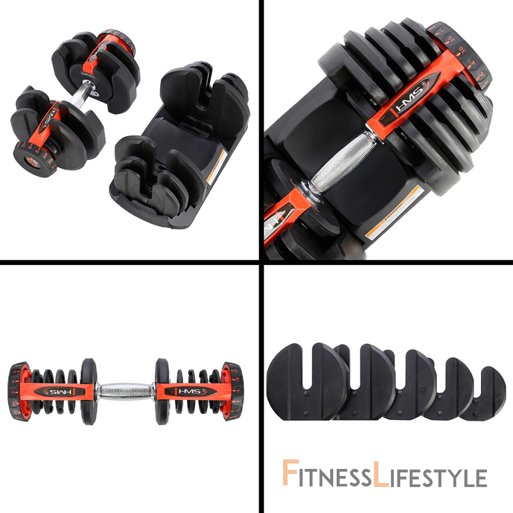 S HMS SR80 zabudnite na ťažké nakladacie činky a kotúče, ktoré zaberajú veľa miesta, na neustálu zmenu závažia na osi a na nekončiace doťahovanie poistných matíc. S nastaviteľnými činkami SR80 máte všetko, čo potrebujete pre efektívny silový tréning. Môžete s nimi vykonávať celý rad cvikov a upravovať záťaž podľa svojho tréningového plánu. Zariadenie sa ľahko zostavuje a skladuje, takže nezaberie veľa miesta.