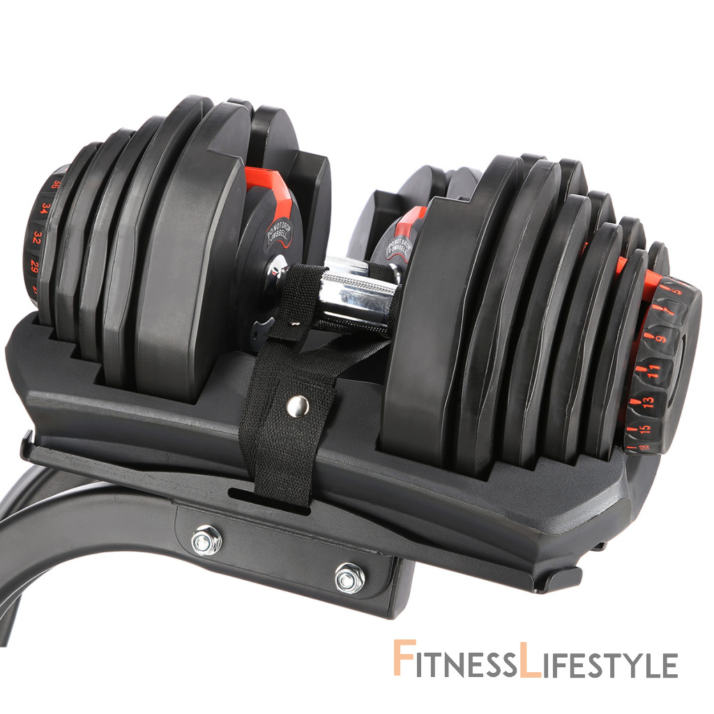 Po vybalení stačí sadu umiestniť do špeciálneho stojana a otočením vonkajších voličov nastaviť príslušnú záťaž, ktorá je označená v librách (1 lbs = 0,45 kg). Systém zámkov spojí s činkou takú kombináciu závaží, ktorá zodpovedá vybranej záťaži a zvyšok závažia zostáva v stojane. Pokiaľ potrebujete záťaž upraviť, potom činku uložíte do stojana, otočíte voliči a môžete pokračovať v tréningu.