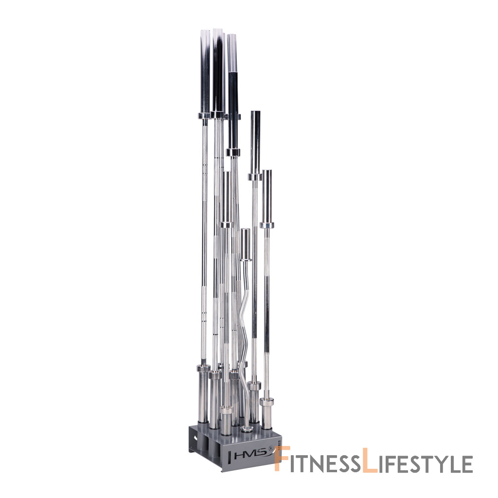 Stojan na olympijské osi STR35 od spoločnosti HMS vám ušetrí veľa miesta vo vašom tréningovom priestore. Umožňuje postaviť deväť osí vedľa seba vo zvislej polohe.