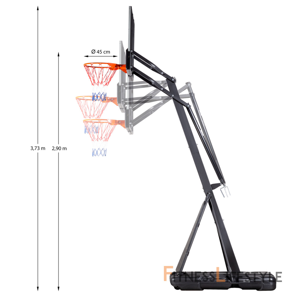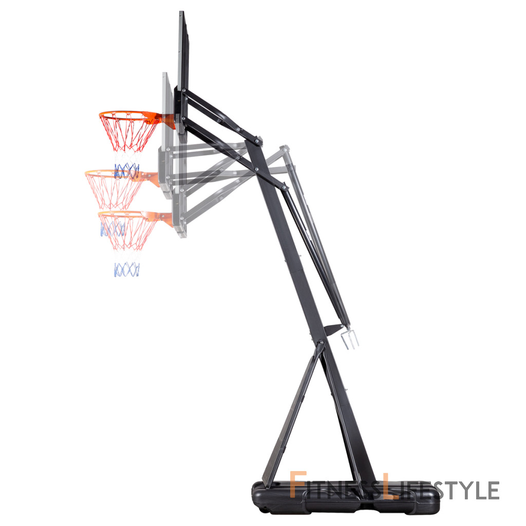 Vďaka možnosti nastavenia výšky sa kôš dokonale prispôsobí vašim potrebám. Či už ste začiatočník, alebo skúsený šampión, náš kôš vám poskytne dokonalé nastavenie pre maximálne využitie vášho potenciálu. Zmena výšky sa vykonáva jednoduchým otáčaním kľučky. Výšku obruče je možné plynule nastaviť v rozsahu od 2,24 do 3,05 metra.
