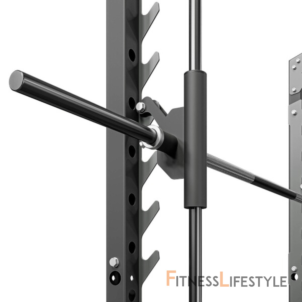 Zariadenie tvorí pohyblivá nakladacia os umiestnená na 2 vodiacich tyčiach, tie zaisťujú plynulý pohyb pri cvičení a špeciálne navrhnuté západky vám dávajú možnosť ľahko uložiť os v jednej z 13 výškových úrovní - stačí otočiť zápästím a činku uzamknúť. Posuvy MS-U105 2.0 sú chránené gumovými dorazmi, ktoré zabraňujú poškodeniu posuvu, pokiaľ činku upustíte bez predchádzajúceho uzamknutia.