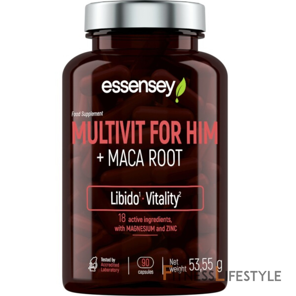 ESSENSEY MULTIVITAMÍN PRE MUŽOV + KOREŇ MACA. Výživový doplnok. Prípravok v kapsuliach s obsahom vitamínov, L-arginínu, extraktu z koreňa maca, DAA, taurínu, horčíka a zinku. Maca prispieva k udržaniu prirodzenej sexuálnej aktivity a energie. Stimuluje sexuálny apetít. Maca pomáha udržiavať optimálnu výdrž a vitalitu. Vitamín B6 a B12, zinok a vitamín C prispievajú k normálnej funkcii imunitného systému. Riboflavín, vitamín B6 a horčík prispievajú k zníženiu únavy a vyčerpania.