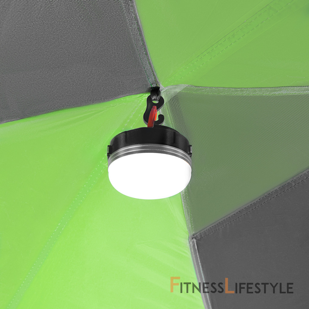 Okrem toho je stan vybavený štyrmi vnútornými vreckami, kde skrývate svoje veci, a dve rukoväte pod stropom, vďaka ktorým môžete zavesiť lampu.