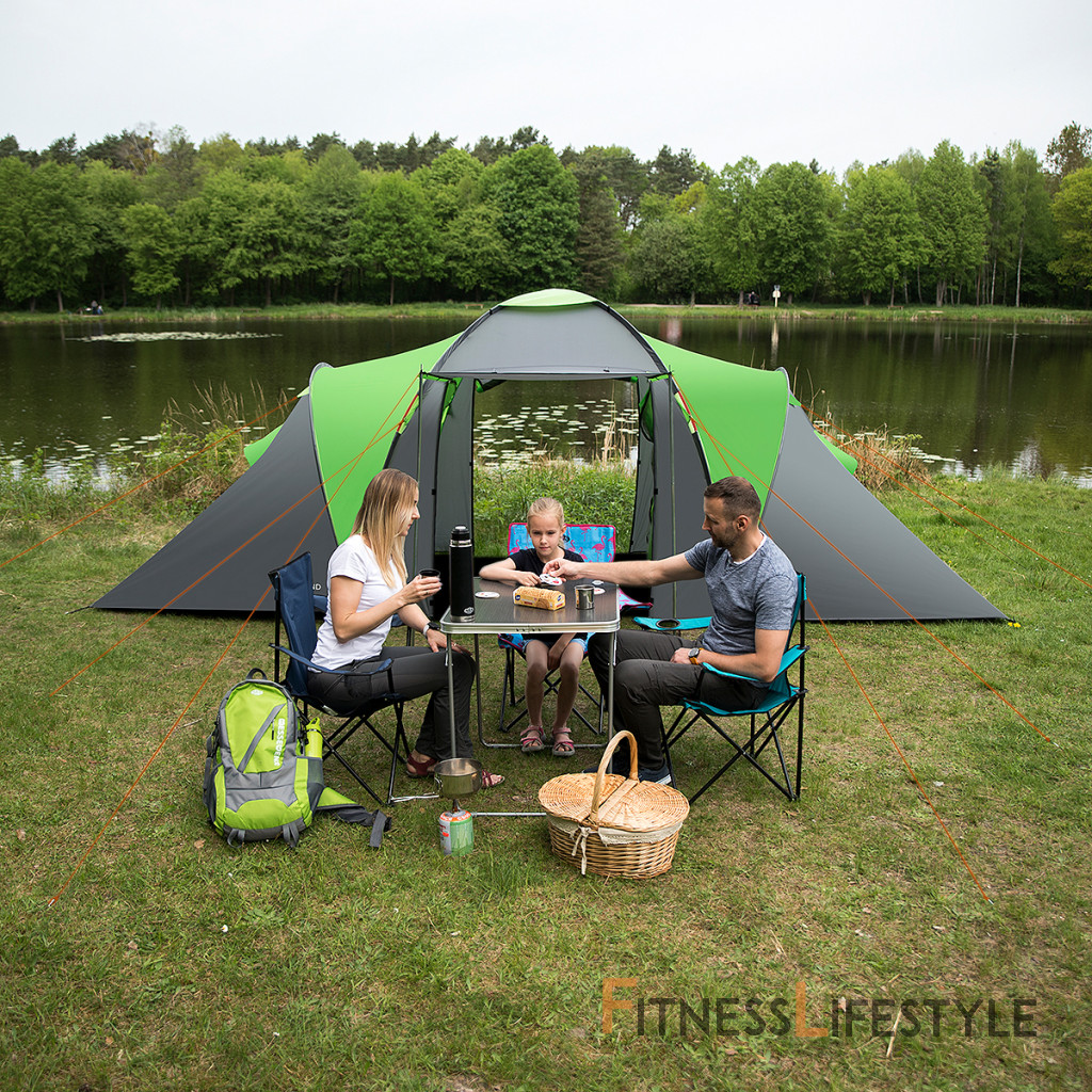 Okrem dvoch dvojlôžkových spální má stan Highland IV tiež veľkú chodbu s podlahou, takže môžete stráviť večery alebo daždivé dni vo vnútri stanu a obchod s kempingom, batohy a topánky cez noc.