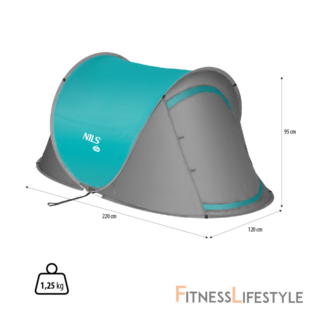Model NC3743 má rozmery 220 x 120 x 95 cm, takže je veľmi priestranný. Stan je zadaný jedným prístupom z čela, ktorý je vybavený sieťou komárov a zipsom plachty. Hlavnou výhodou NC3743 je, že sa rozkladá. Stačí ho vybrať z prepravného vrecka a položte ho na zem. Stan je pripravený za pár sekúnd. Vďaka uzavretým kolíkom a napínaniu laná sa stan nepohybuje a nie je riziko fúkania vetra.Stan NC3743 je vyrobený z kvalitných materiálov. Podlaha je vodotesná, takže mokrý piesok a tráva nebude problémom. Sieť pri vchode a vetranie na opačnej strane zaisťujú cirkuláciu vzduchu. Stan má tiež ochranu pred UV žiarením.