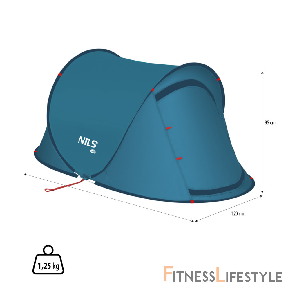 Model NC3743 má rozmery 220 x 120 x 95 cm, takže je veľmi priestranný. Stan je zadaný jedným prístupom z čela, ktorý je vybavený sieťou komárov a zipsom plachty. Hlavnou výhodou NC3743 je, že sa rozkladá. Stačí ho vybrať z prepravného vrecka a položte ho na zem. Stan je pripravený za pár sekúnd. Vďaka uzavretým kolíkom a napínaniu laná sa stan nepohybuje a nie je riziko fúkania vetra.Stan NC3743 je vyrobený z kvalitných materiálov. Podlaha je vodotesná, takže mokrý piesok a tráva nebude problémom. Sieť pri vchode a vetranie na opačnej strane zaisťujú cirkuláciu vzduchu. Stan má tiež ochranu pred UV žiarením.