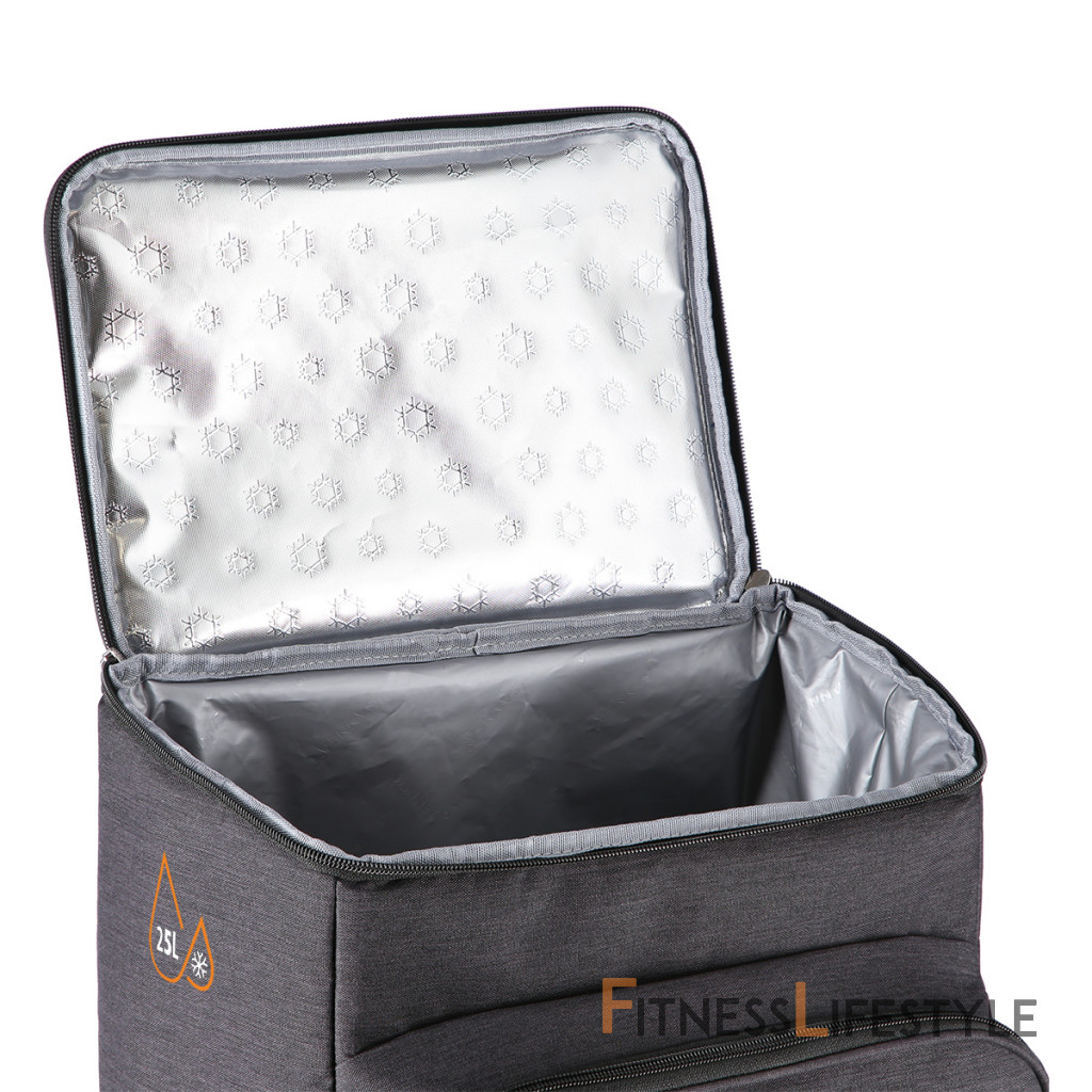 Vyrobené z odolnej tkaniny 300D Oxford a podšité izolačným PEVA, hlavný oddiel poskytuje vynikajúcu tepelnú ochranu. Taška tiež ponúka ďalší priestor vďaka dvom bočným sieťovaným vreckám a dvom predným vreckám na zips, ideálny na uloženie vecí, ktoré nevyžadujú tepelnú izoláciu. Vďaka objemu 25 litrov a nízkej hmotnosti je nielen veľmi priestranná, ale taktiež sa ľahko prepravuje, čo z nej robí vášho spoľahlivého partnera pri akomkoľvek outdoorovom dobrodružstve. NC3140 má navyše nastaviteľné ramenné popruhy, ktoré umožňujú nosenie na chrbte ako batoh. Toto riešenie je ideálne pre ľudí, ktorí chcú mať voľné ruky na cestách, či už pri pešej turistike alebo na bicykli.