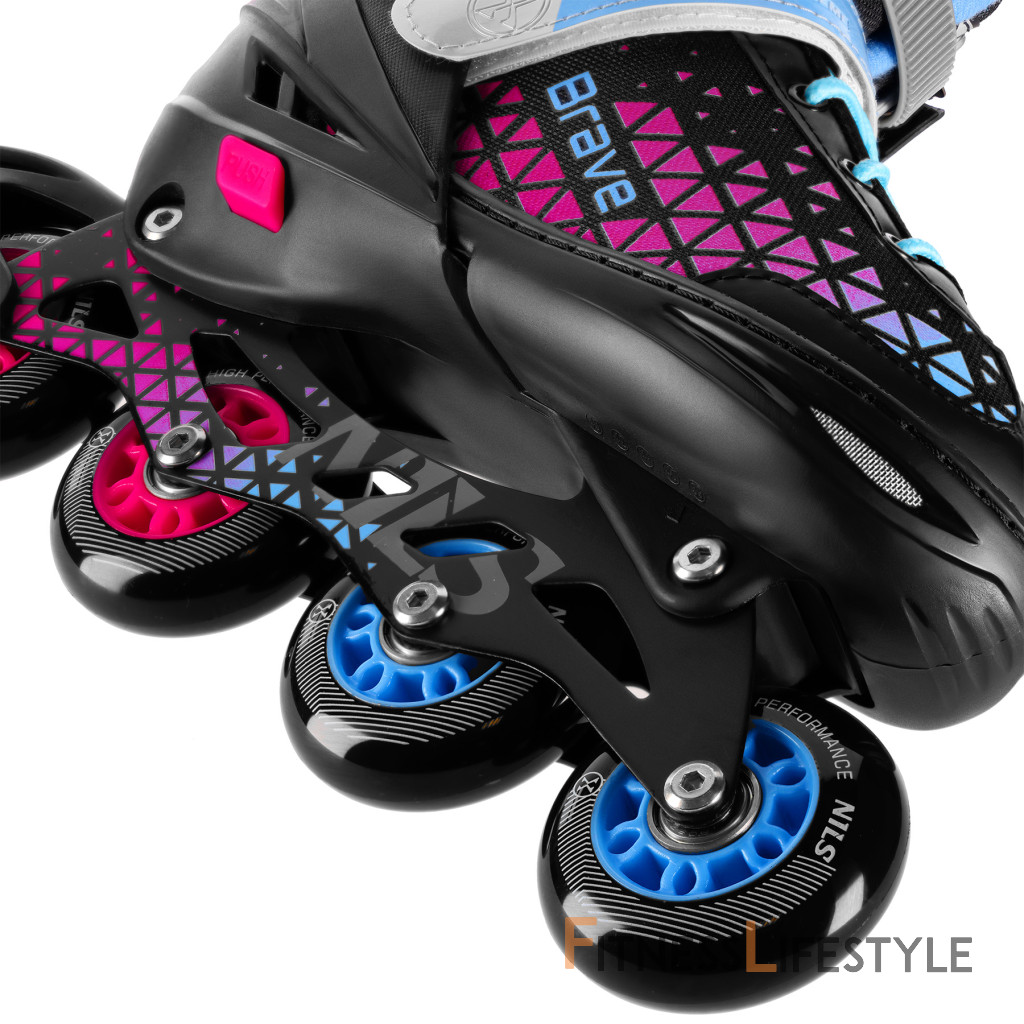 Polyuretánové kolieska zaisťujú plynulú a rýchlu jazdu a účinne vyrovnávajú nerovnosti terénu. Vďaka použitiu presných ložísk ABEC-7, ktoré minimalizujú trenie, si užívatelia môžu užívať plynulú jazdu s minimálnou námahou. Korčule NA18190A Brave je možné navyše vďaka nastaviteľnej veľkosti používať viac sezón a prispôsobiť ich meniace sa veľkosti nohy užívateľa. Vďaka tomu korčule účinne "rastú" s korčuliarom a zaisťujú dlhodobé používanie a prispôsobenie.