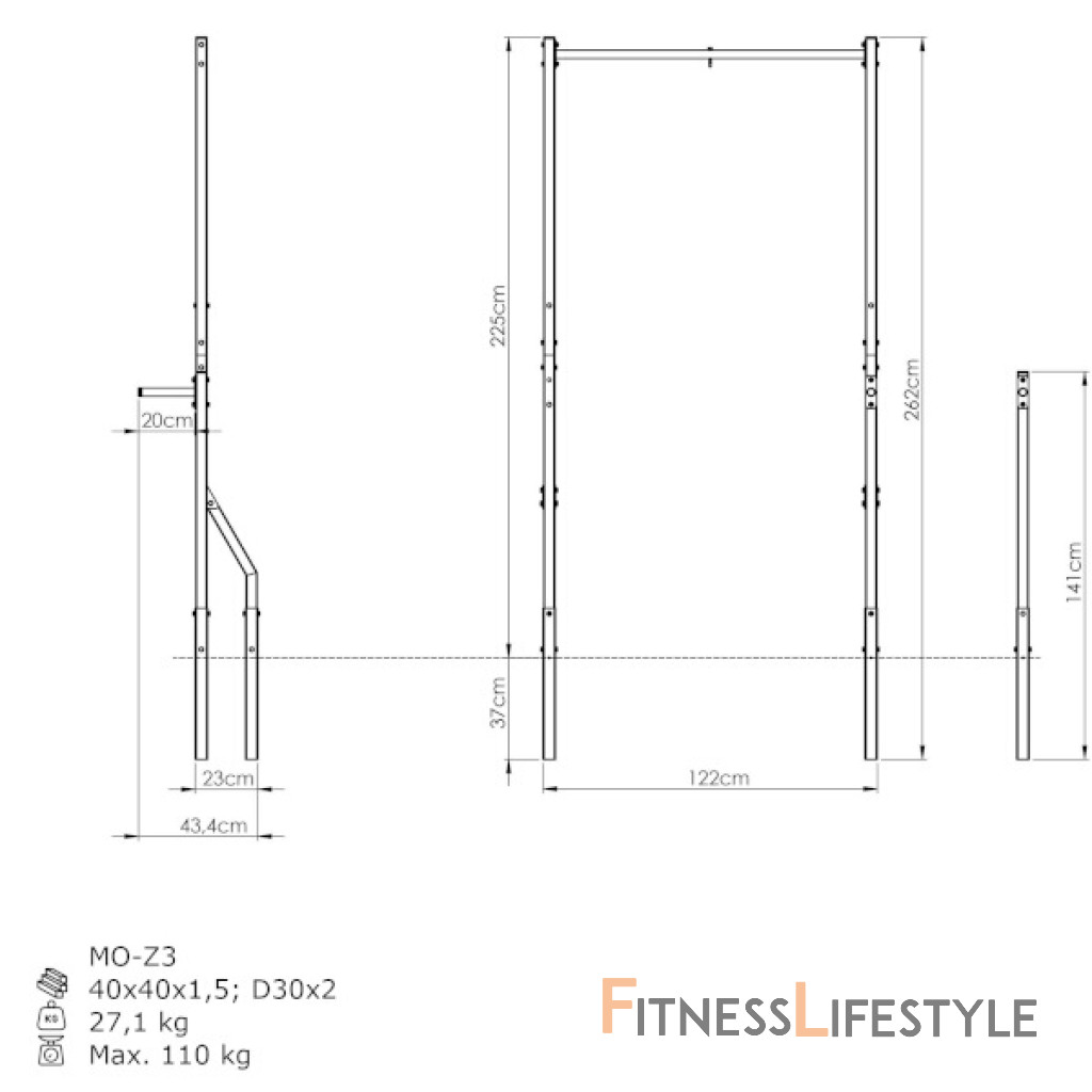 Hrazda je umiestnená vo výške 225 cm a poskytuje pohodlný úchop. Vďaka tomu môžete vykonávať širokú škálu silových a posilňovacích cvikov pre svaly hornej polovice tela. Ide o riešenie pre začiatočníkov i pokročilých užívateľov!