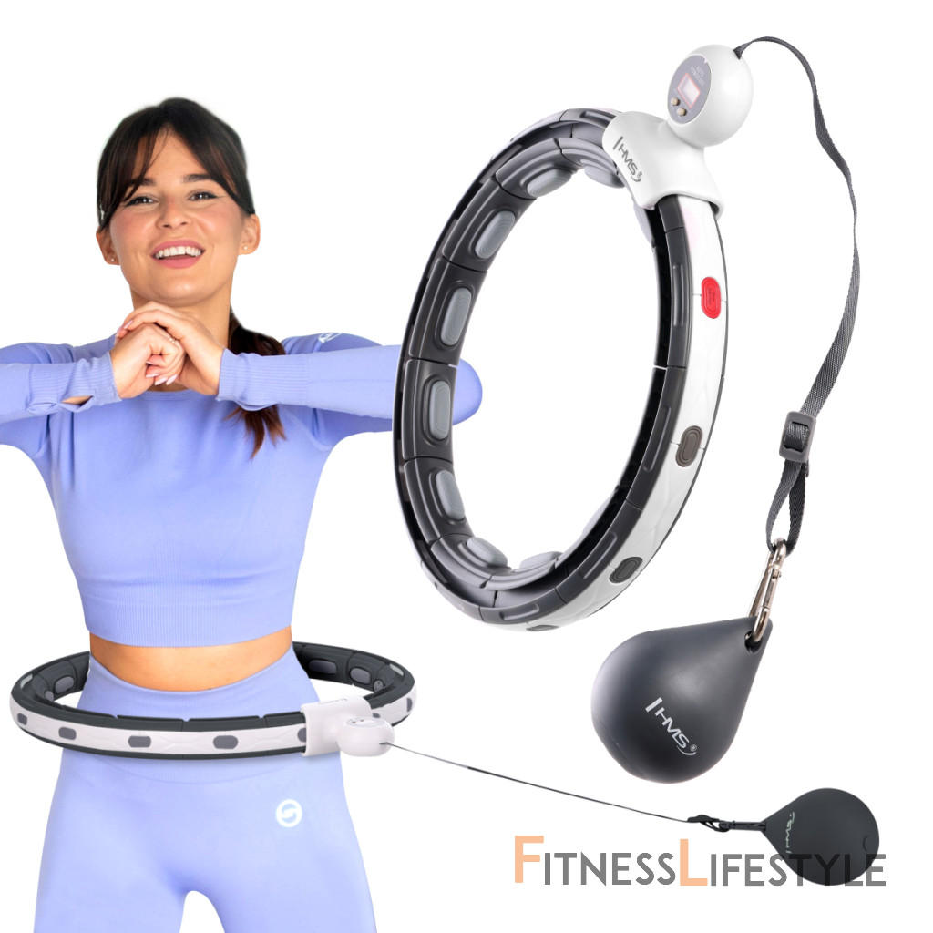HMS HHM15 je hula hoop obruč s nastaviteľným obvodom, masážnymi magnetickými výstupkami, rotujúcim závažím a počítadlom.