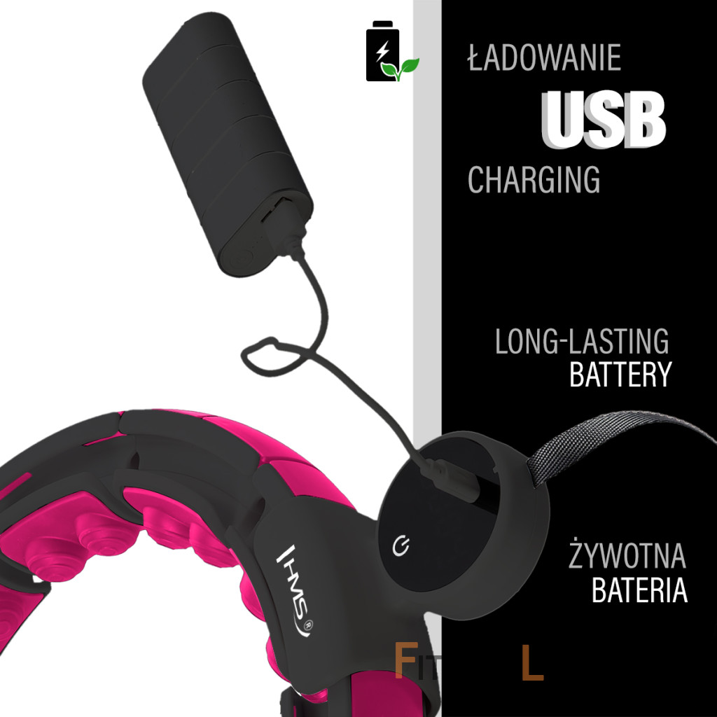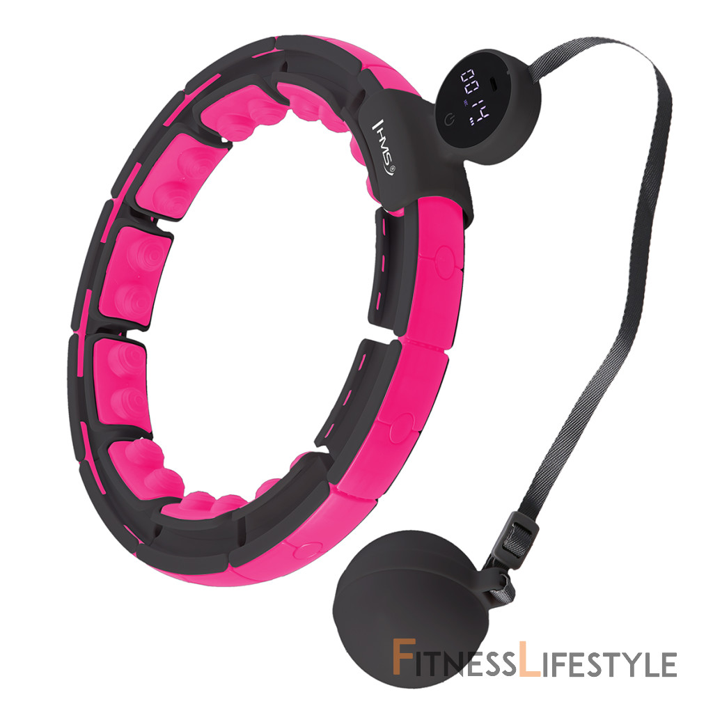 HMS HHM16 je hula hoop obruč s nastaviteľným obvodom, masážnymi magnetickými výstupkami, rotujúcim závažím a prehľadným, dobre čitateľným počítadlom. Konštrukcia masážneho hula hoopu Konštrukcia sa skladá z 16-tich rovnakých dielov, ktoré sa spájajú pomocou plastových spojok. Aby išla obruč uzavrieť, tak je potrebné použiť najmenej 10 dielov. štyrmi kolieskami s guličkovými ložiskami. Ku kotve je, pomocou dĺžkovo nastaviteľného remienka, pripojené závažie s hmotnosťou 300 gramov. Povrázok je možné nastaviť na dĺžku 20 až 38 centimetrov, zmenou dĺžky povrázka sa nastavuje výsledná odstredivá sila závažia - čím dlhší povrázok, tým "ťažšie" bude závažie. Magnetická masáž Každý diel HHM16 je z vnútornej strany opatrený dvoma masážnymi výstupkami, ktoré v sebe skrývajú magnet. Výstupky príjemne masírujú oblasť pása, tým sa pokožka prekrvuje a dochádza k narušovaniu a odbúravaniu tukového tkaniva. na funkciu metabolizmu. Používanie Dĺžka obruče sa nastaví podľa obvodu pása tak, aby bola dostatočne voľná, ale zároveň aby nepadala cez boky. závažím a obruč sa uzavrie. Závažie sa následne „vrhne“ smerom, do ktorého budeme krútiť. boky a začneme tréning. Intenzitu tréningu ovplyvňuje rýchlosť, akú krútime boky. Počítač s dobre čitateľným displejom a jeho funkcie Rozmerný a dobre čitateľný LCD displej umiestnený na kotve zobrazuje informácie o čase tréningu, počte spálených kalórií, a rýchlosti krúženia. Údaje je možné použiť na kontrolu tréningu a na sledovanie kondície. tréningov. Akumulátor sa dobíja pomocou USB-C konektora nad displejom. od telefónu, powerbanku alebo napríklad notebook. O úrovni nabitia akumulátora informuje ukazovateľ pod displejom.
