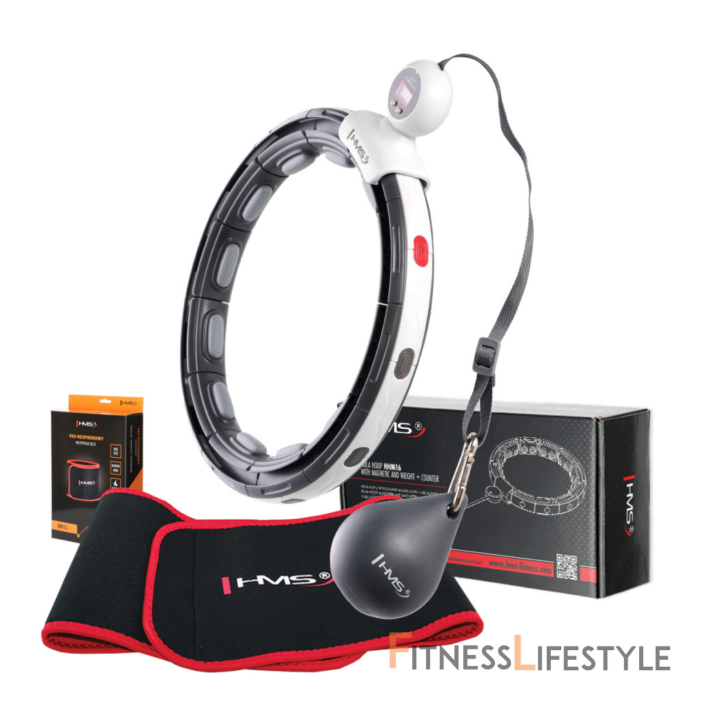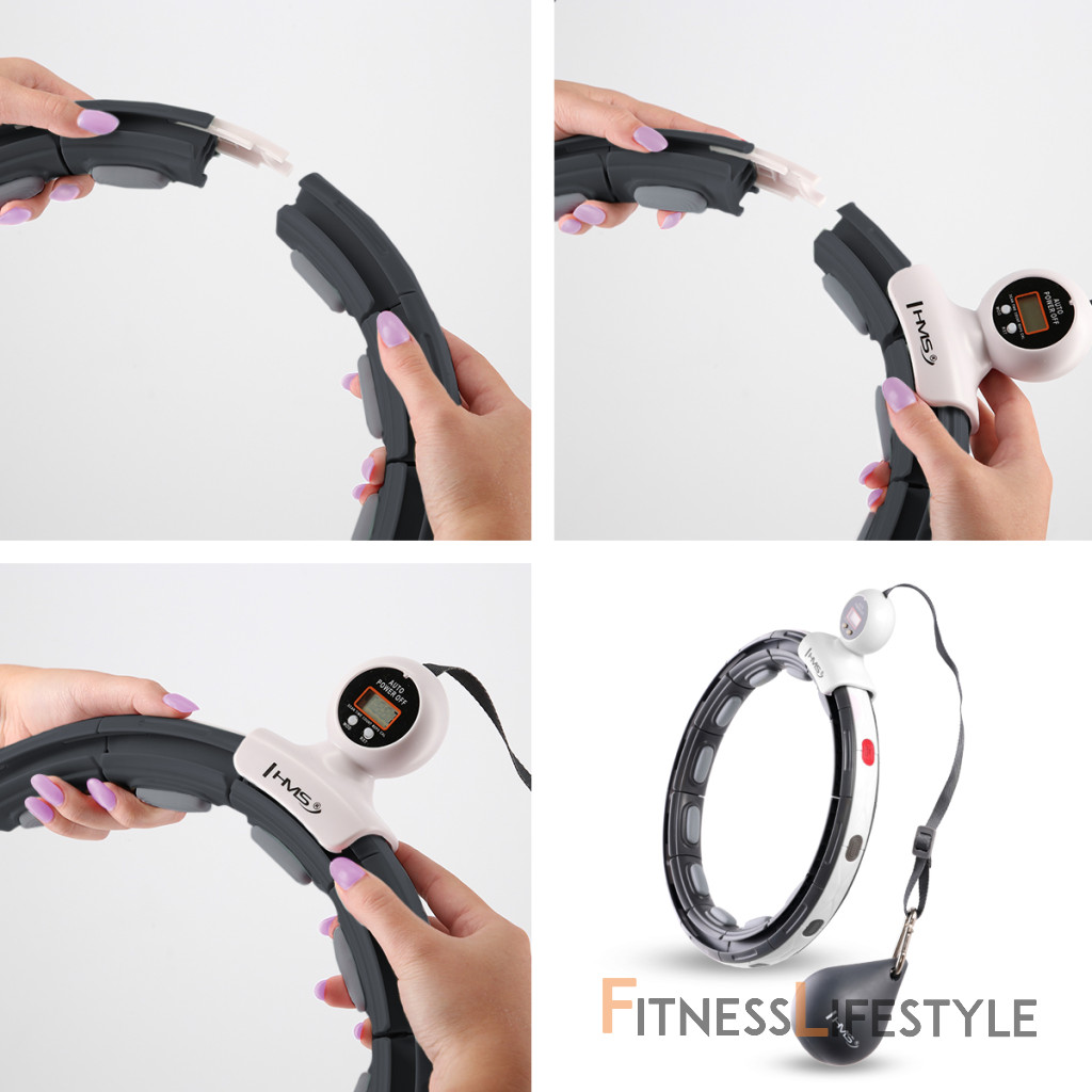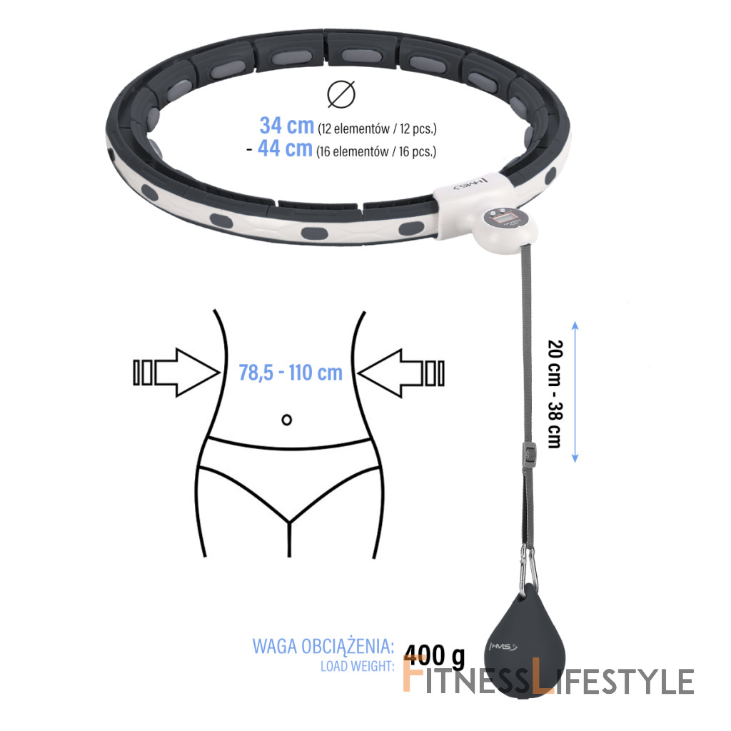 HMS HHM15 je hula hoop obruč s nastaviteľným obvodom, masážnymi magnetickými výstupkami, rotujúcim závažím a počítadlom.