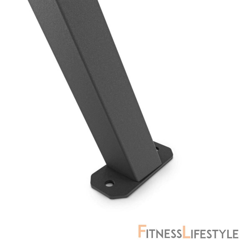 Ponúkaný oceľový rám predstavuje odolnú a bezpečnú konštrukciu. Profily 60x60x2 mm z vysoko kvalitnej ocele zaručujú bezpečné používanie. Stabilitu rámu navyše zaisťuje výstuha medzi nohami a priečkou v podobe vhodne zakriveného upevňovacieho prvku. Práškovo lakovaná oceľ navyše zaisťuje vysokú odolnosť voči poveternostným podmienkam - napríklad dažďu, vetru, nízkym a vysokým teplotám - a mechanickému poškodeniu vrátane poškriabania.