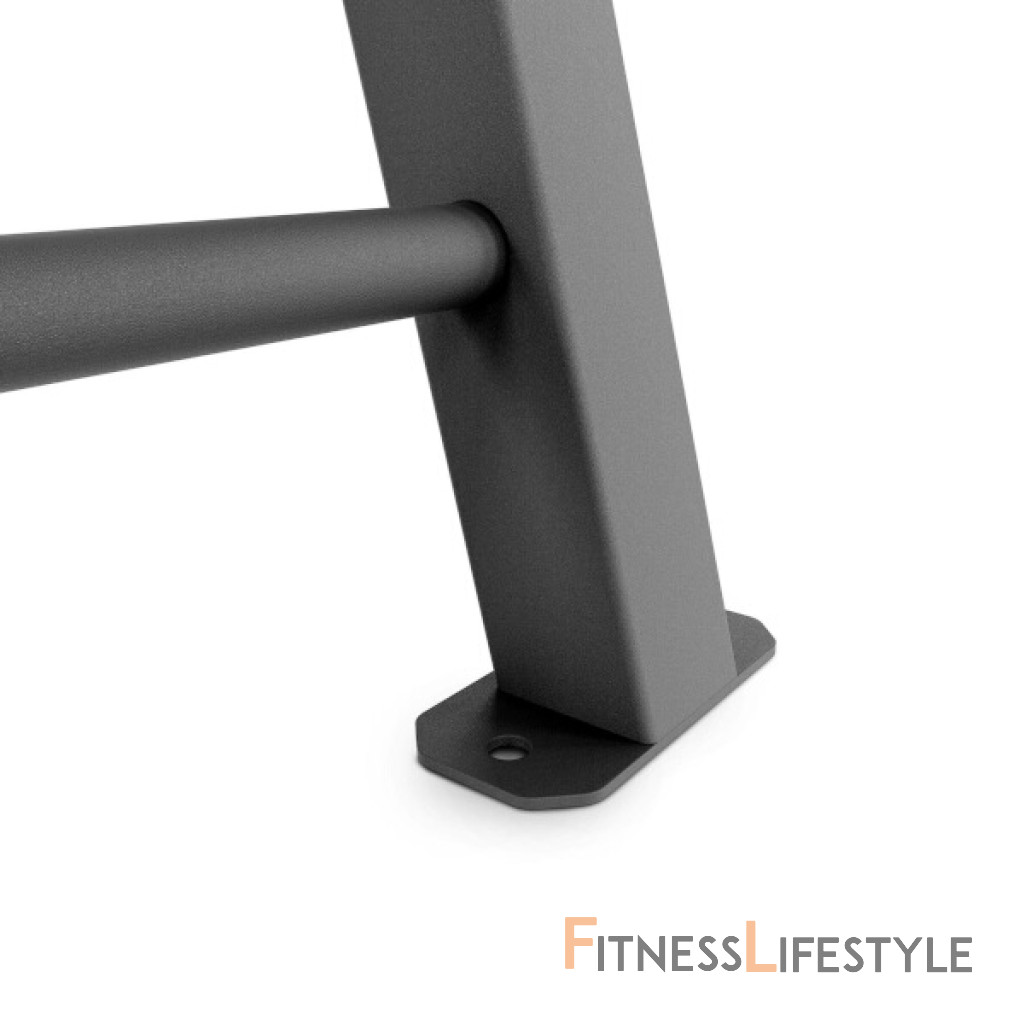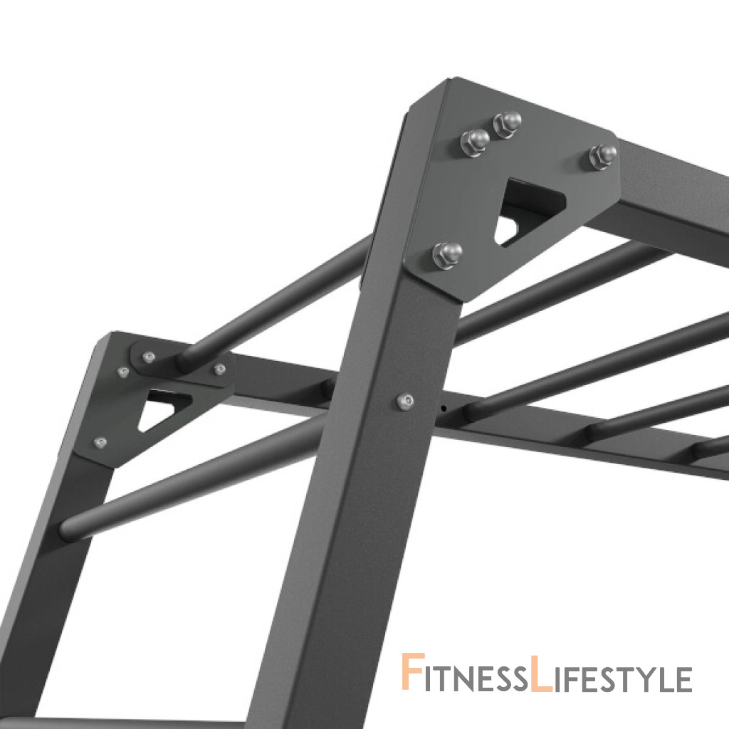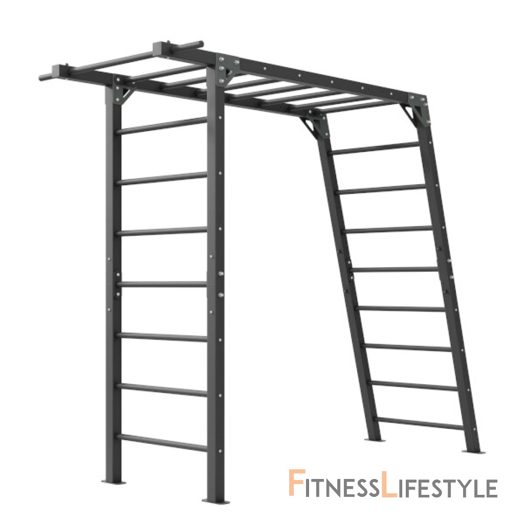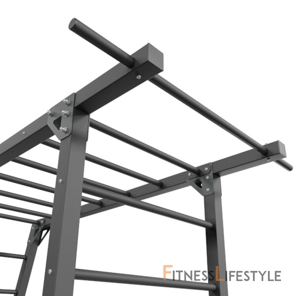 Rebriny sú vo zvislej polohe a majú výšku 210 centimetrov a 8 priečok. Priečky sú od seba vo vzdialenosti 26 cm a majú priemer 3 cm. V úrovni poslednej priečky sa nachádza predsunutá hrazda so šírkou 121 cm. Táto strana konštrukcie je možné využiť na širokú škálu cvikov, možno na ňu pripevniť aj tréningové gumy alebo závesný posilňovací systém. Z druhej strany konštrukcie sa nachádza šikmý a horizontálny rebrík, ktorý nájde ideálne využitie ako preliezačka pre deti.