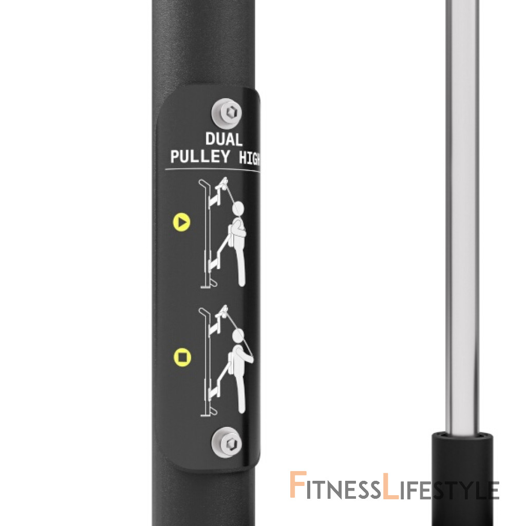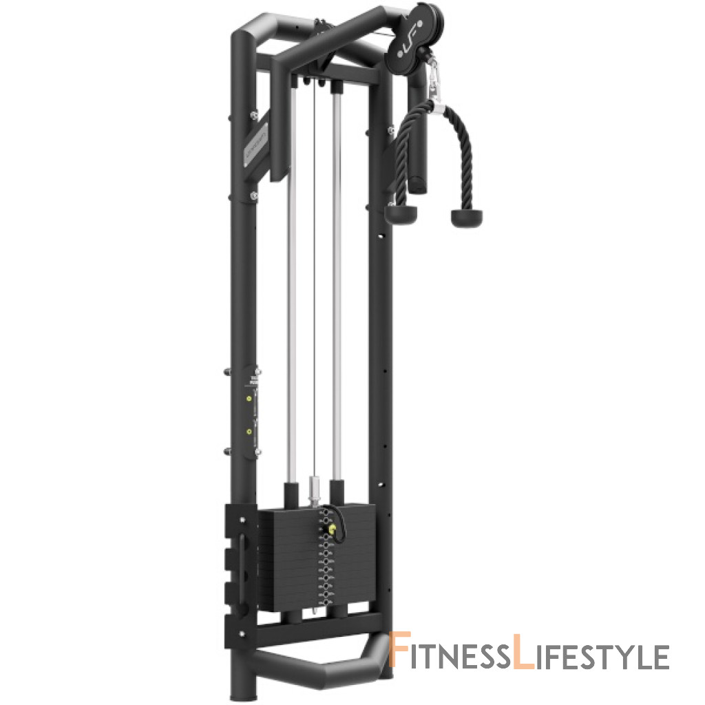Vrchná kladka UpForm UF-010 je vybavená sadou závaží obsahujúcou 12 tehál s celkovou hmotnosťou 90 kilogramov odstupňovaných po 7,5 kg a jednou doplnkovou tehlou s hmotnosťou 3,75 kilogramov, tá sa umiestňuje nad prvú pevnú tehlu a používa sa na volenie ,75 kilogramov. Volič váhy je opatrený nálepkami pre rýchlu voľbu požadovanej záťaže a istiaci čap je pripevnený na lanku, takže nehrozí jeho strata. Horné rameno sa nachádza vo výške 210 centimetrov, na stroji tak môže pohodlne trénovať ktokoľvek do výšky 200 cm. Všetky kladky sú schované pod kovovými krytmi s logom UpForm. Oceľové lanko je pokryté čiernym PVC, je zakončené masívnym okom a je odpružené gumovým tlmičom.