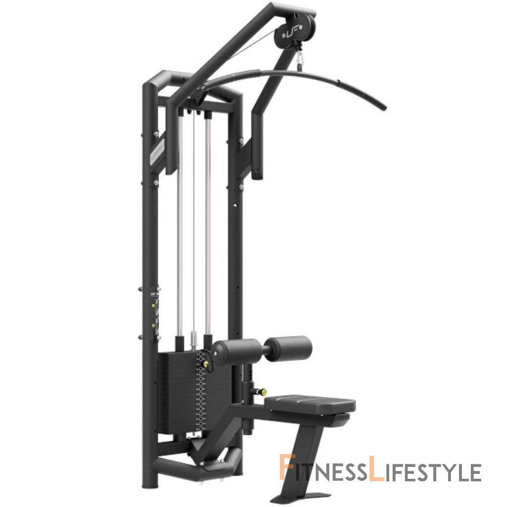 Vrchná kladka UpForm UF-003 je vybavená sadou závažia obsahujúcou 16 tehál s celkovou hmotnosťou 120 kilogramov odstupňovaných po 7,5 kg. Volič váhy je opatrený nálepkami pre rýchlu voľbu požadovanej záťaže a istiaci čap je pripevnený na lanku, takže nehrozí jeho strata. Stanica je opatrená sedadlom a zarážkou nôh, ktorá je výškovo nastaviteľná pomocou pružinového, istiaceho kolíka. Na samotné sedadlo bolo použité perforované čalúnenie, ktoré zaisťuje dostatočnú ventiláciu a odvod vlhkosti. Horné rameno sa nachádza vo výške 233 centimetrov, na stroji tak môže pohodlne trénovať ktokoľvek do výšky 200 cm. Všetky kladky sú schované pod kovovými krytmi s logom UpForm. Oceľové lanko je pokryté čiernym PVC, je zakončené masívnym okom a je odpružené gumovým tlmičom.